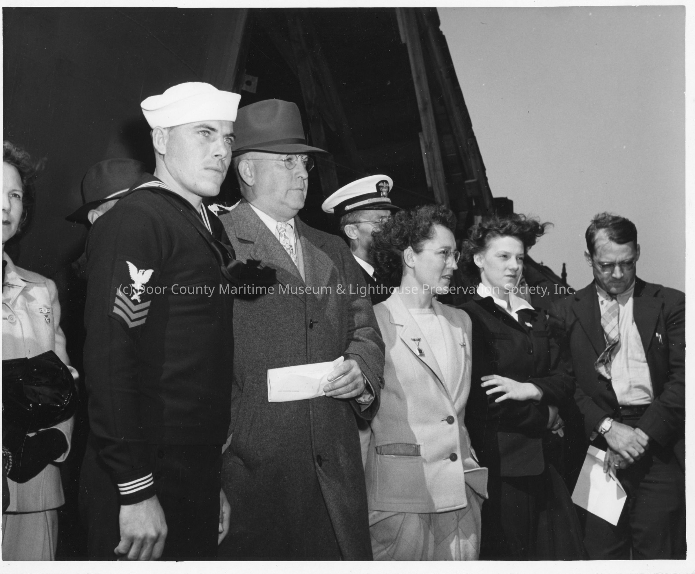 Leathem D. Smith and group standing at bow of PC-1177Entry/Object ID