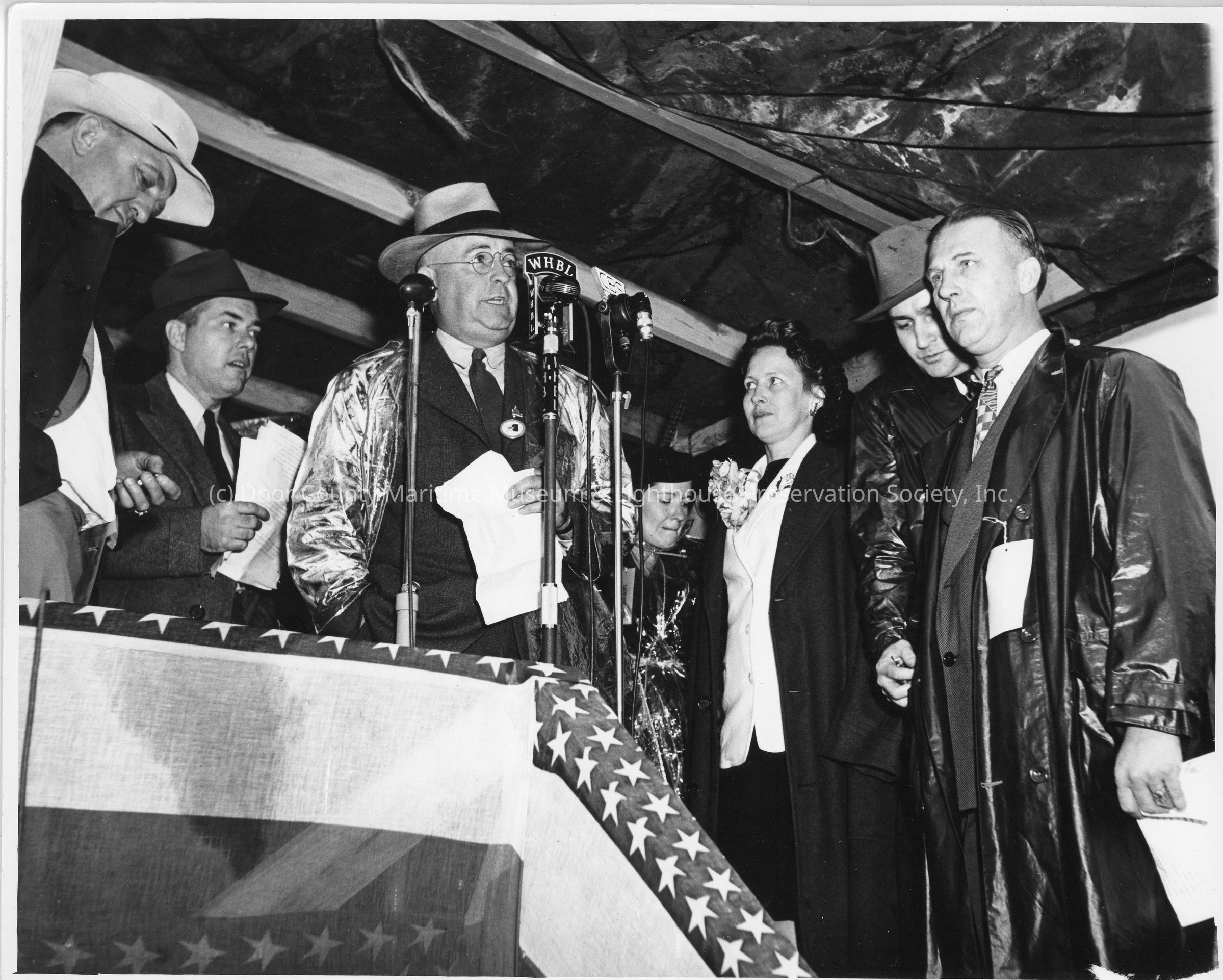 L.D. Smith at WHBL microphone during PC-1225 ship christeningEntry/Object ID