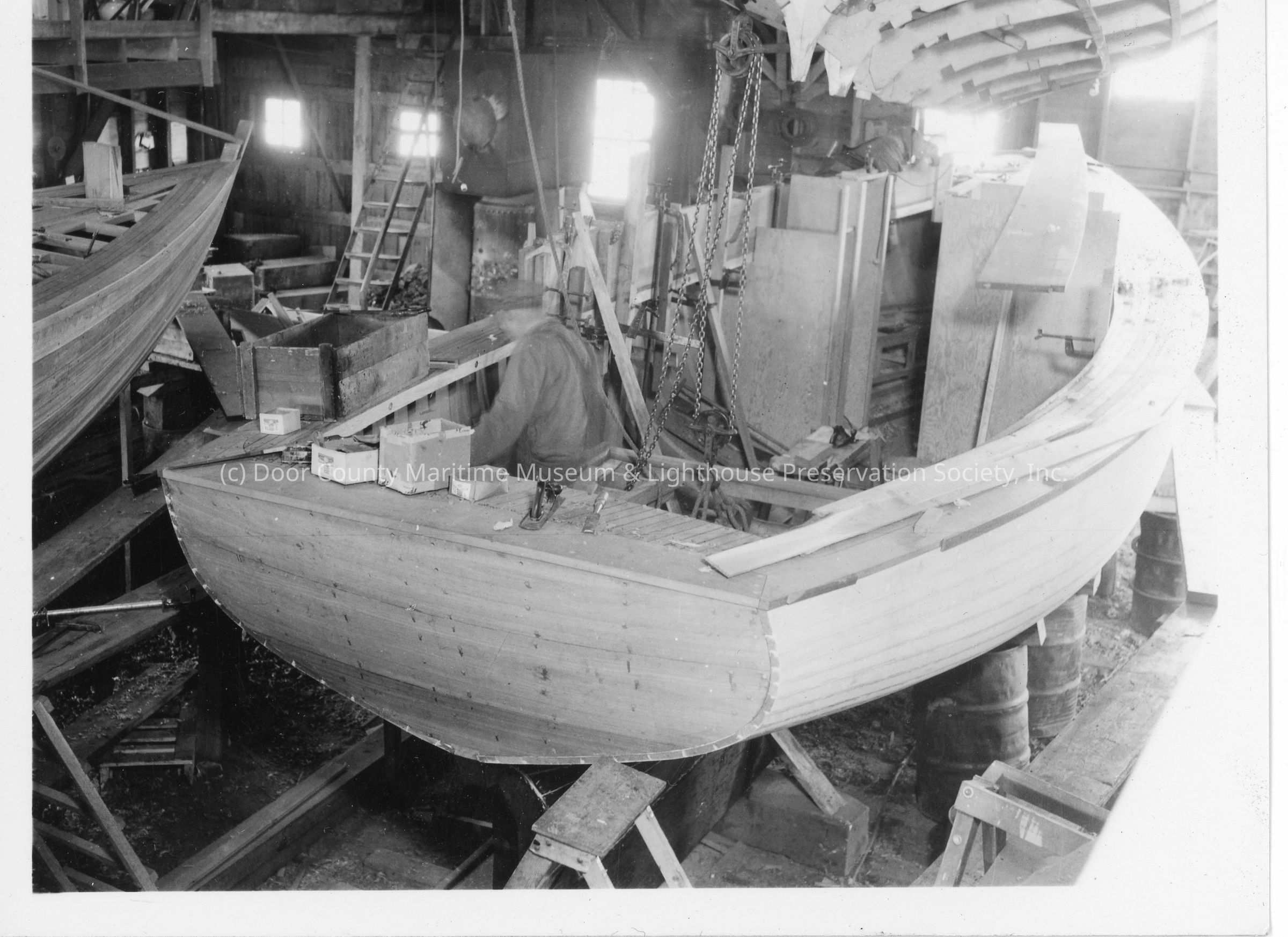 32' motor sailor under construction at Peterson Boat Works 1937