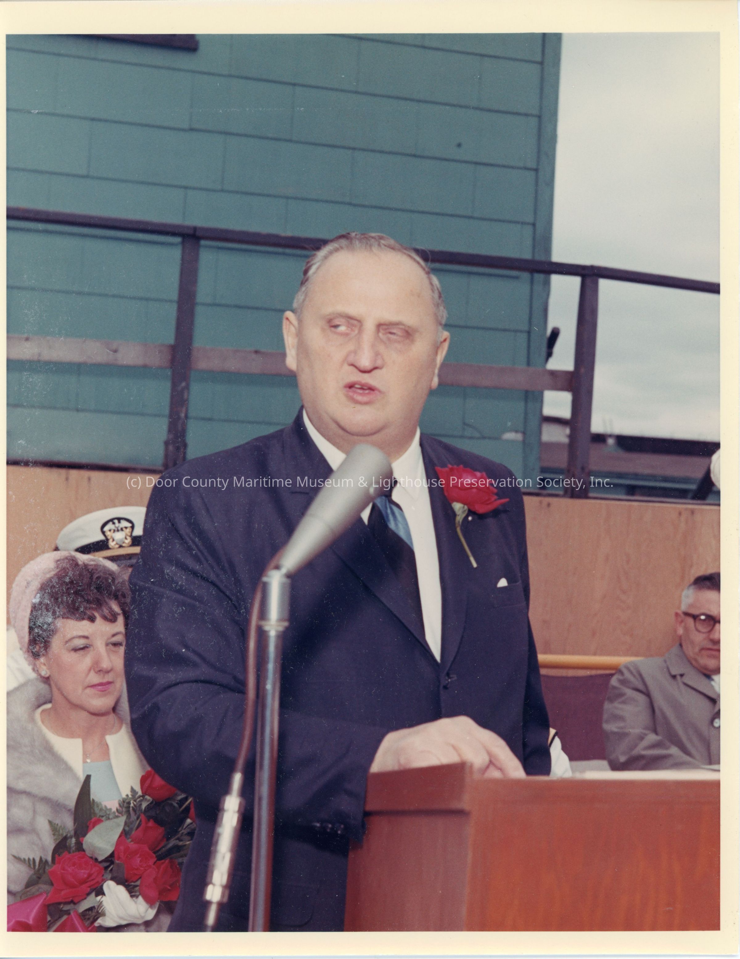 Man speaking at PG-99 USS Beacon christening
