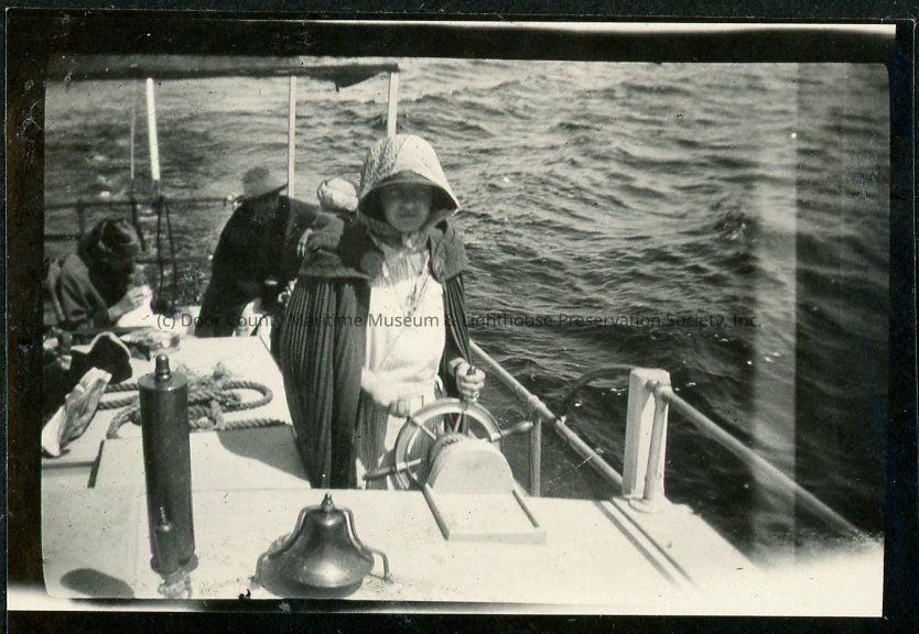 Marie at the wheel of the Oweenee 1923Entry/Object ID