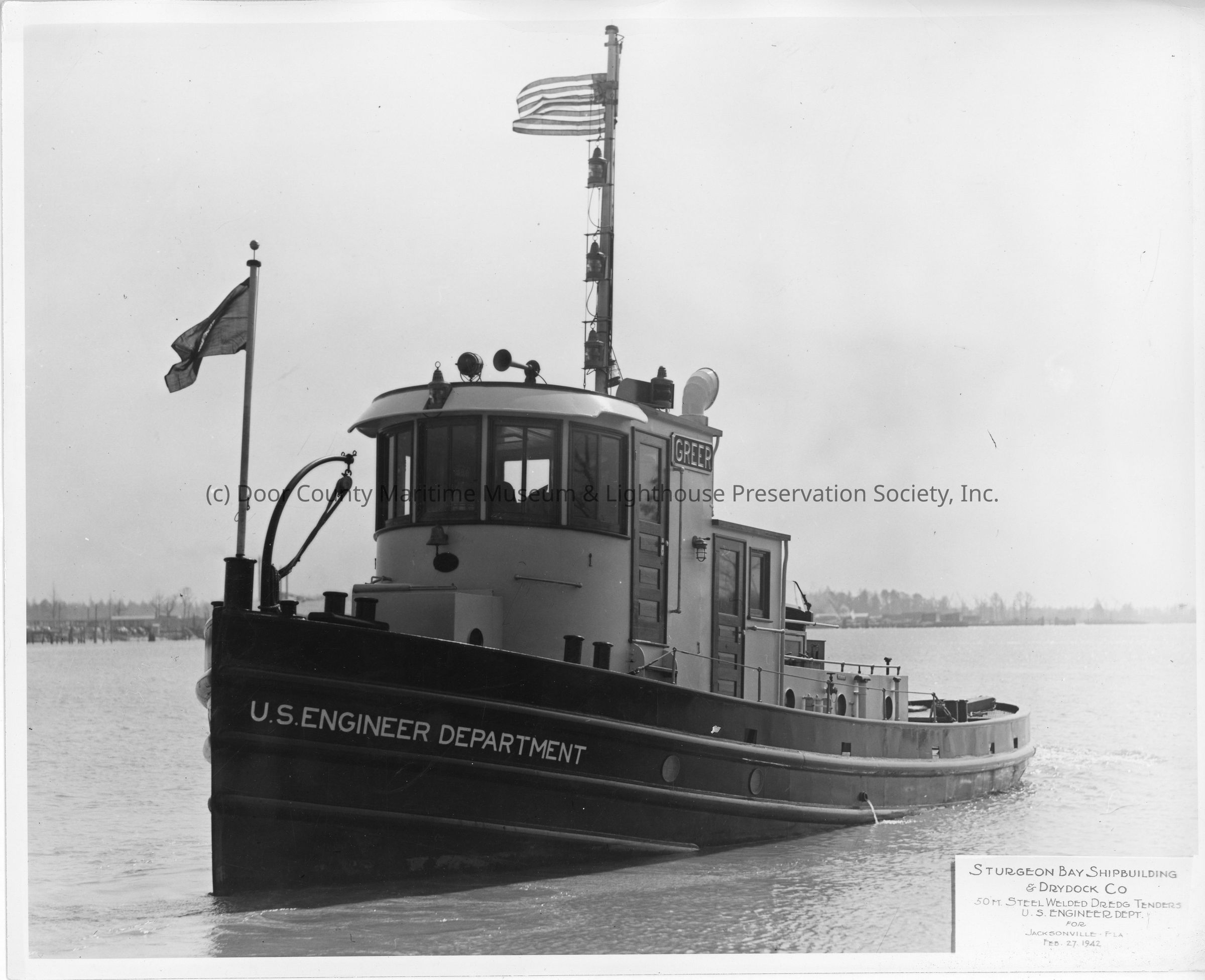50' steel welded dredge tender Greer underway on February 27, 1942