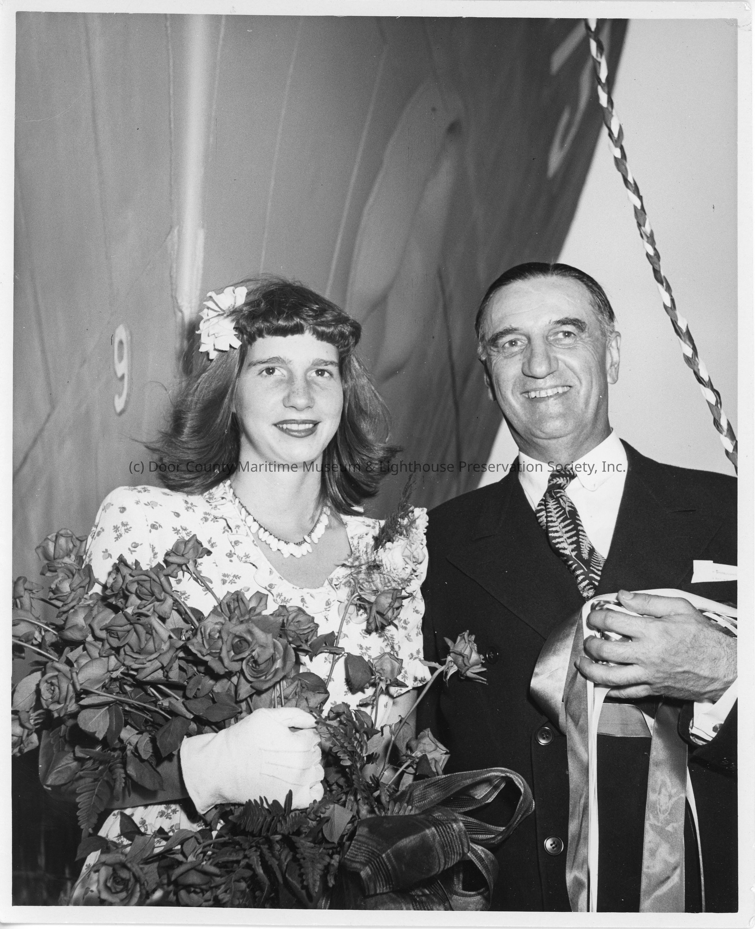 Miss Joan Burgess holding roses at PC-1175 christeningEntry/Object ID