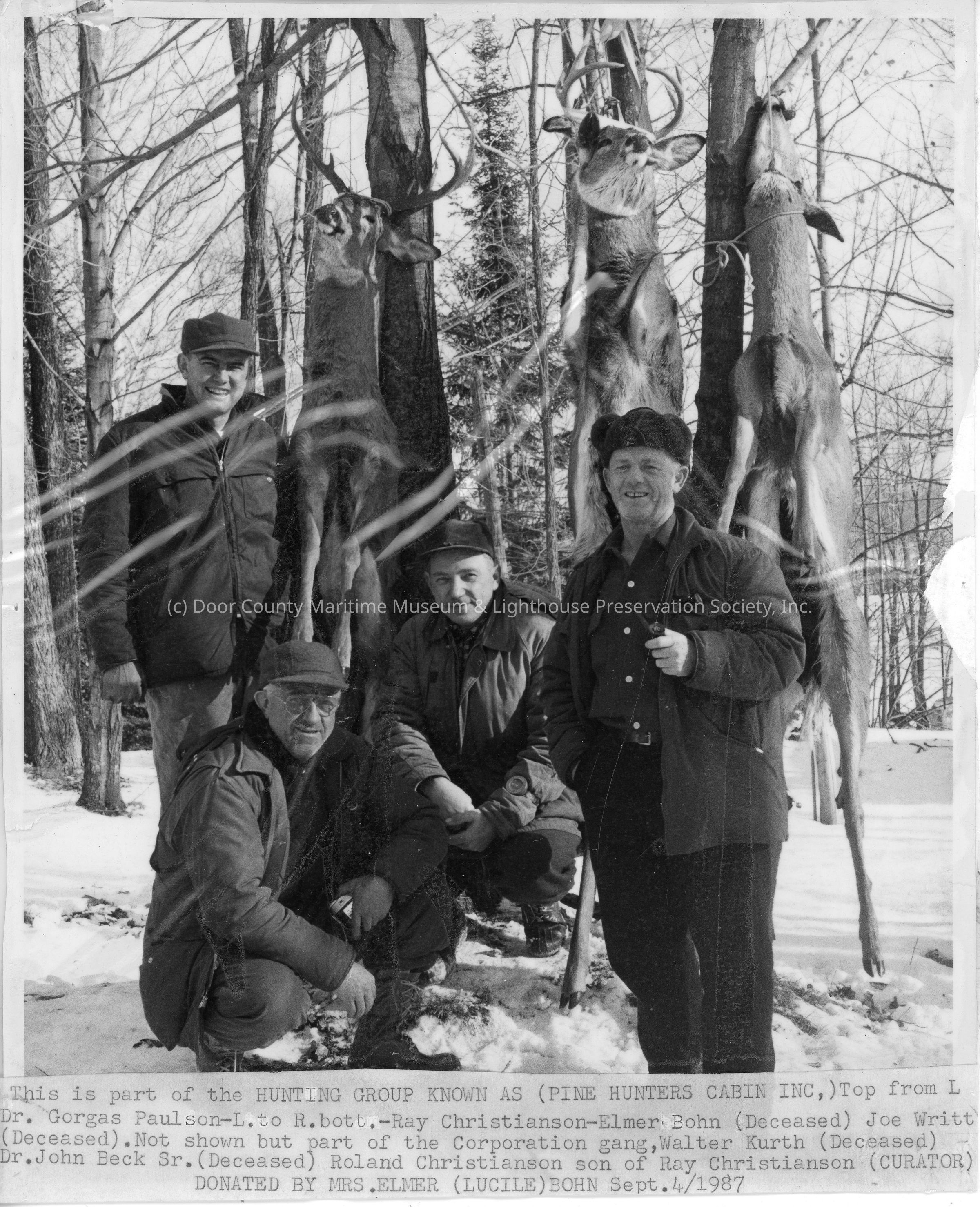 Deer Hunters left to right: Dr. Gorgas Paulsen, C. Ray Christianson, Elmer Bohn, Joe Writt. Mounted on cardboardLocation