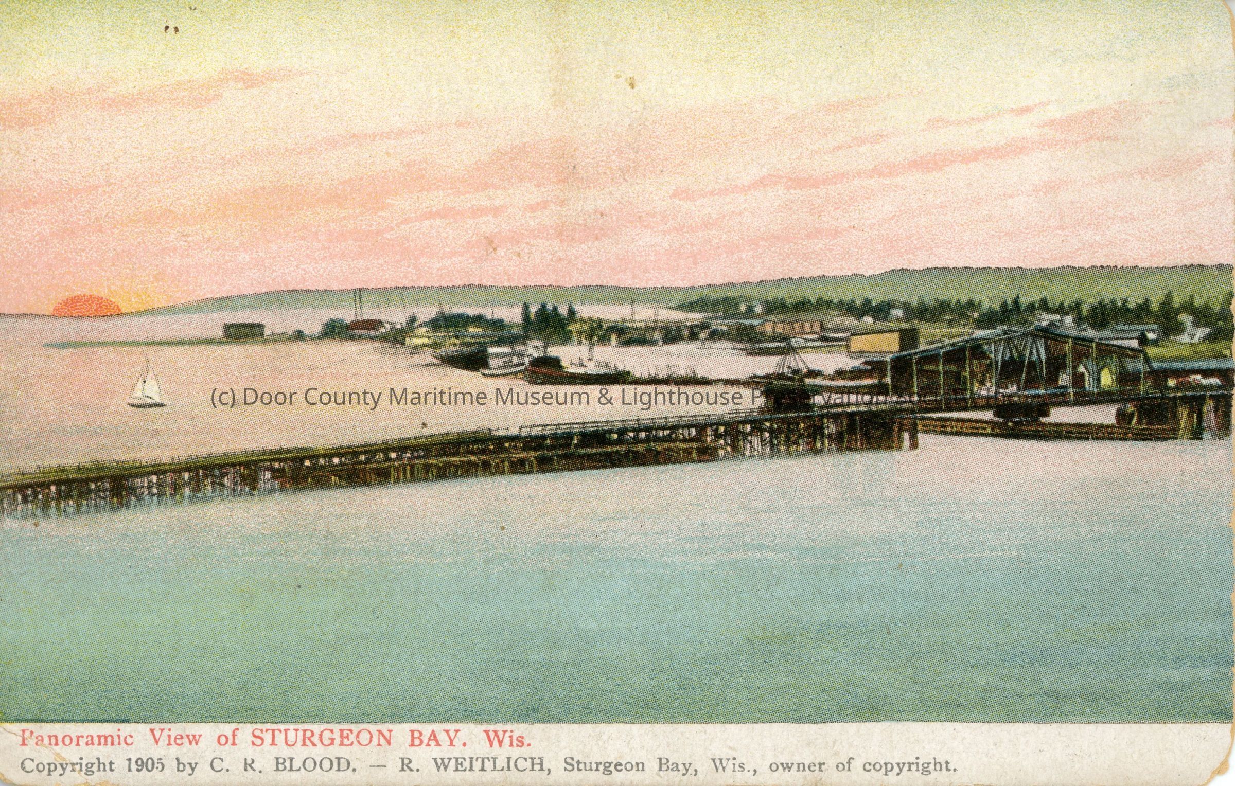 Panoramic view of Sturgeon Bay showing old railroad bridge 1905