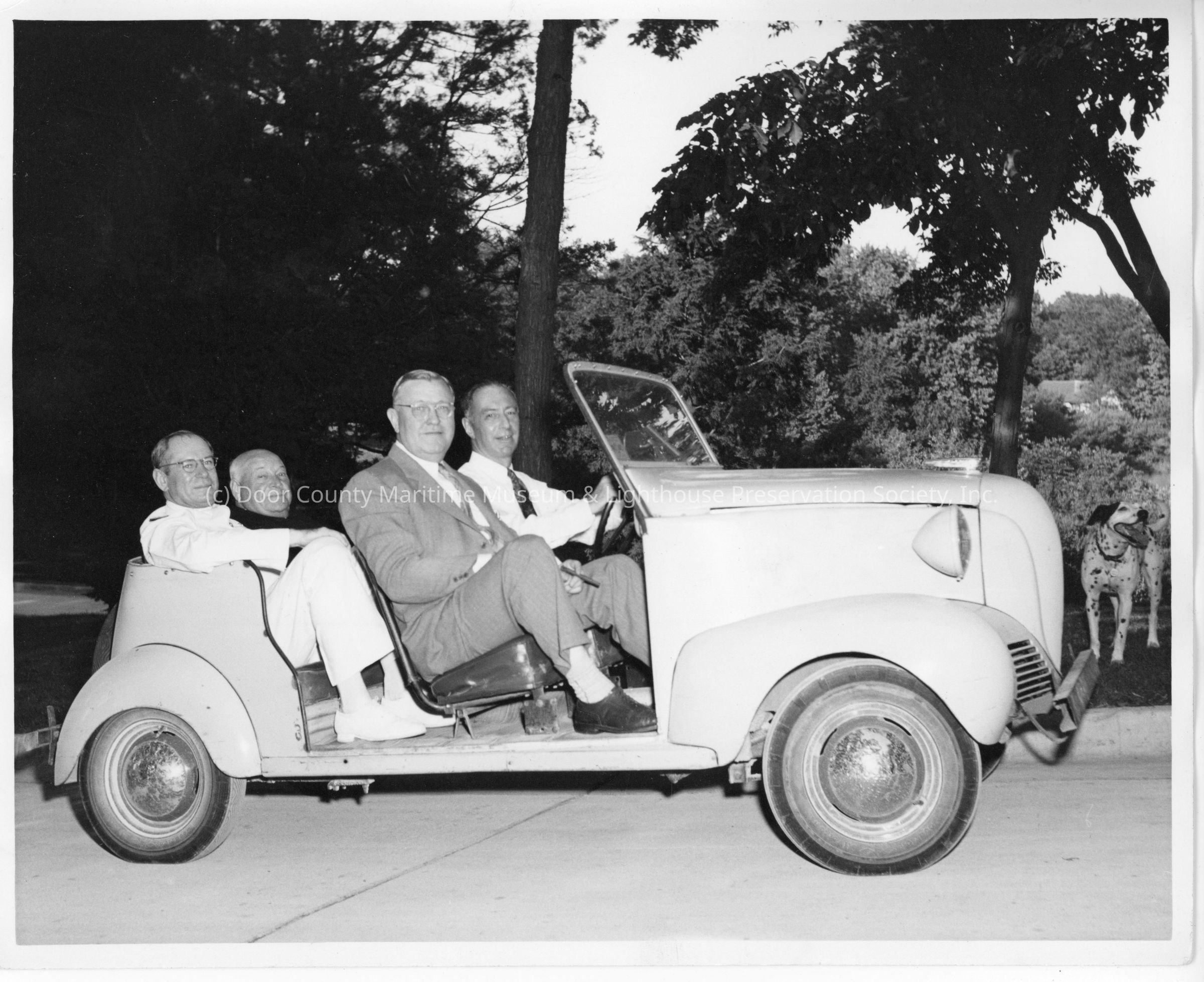 Four unidentified men in light colored sports car