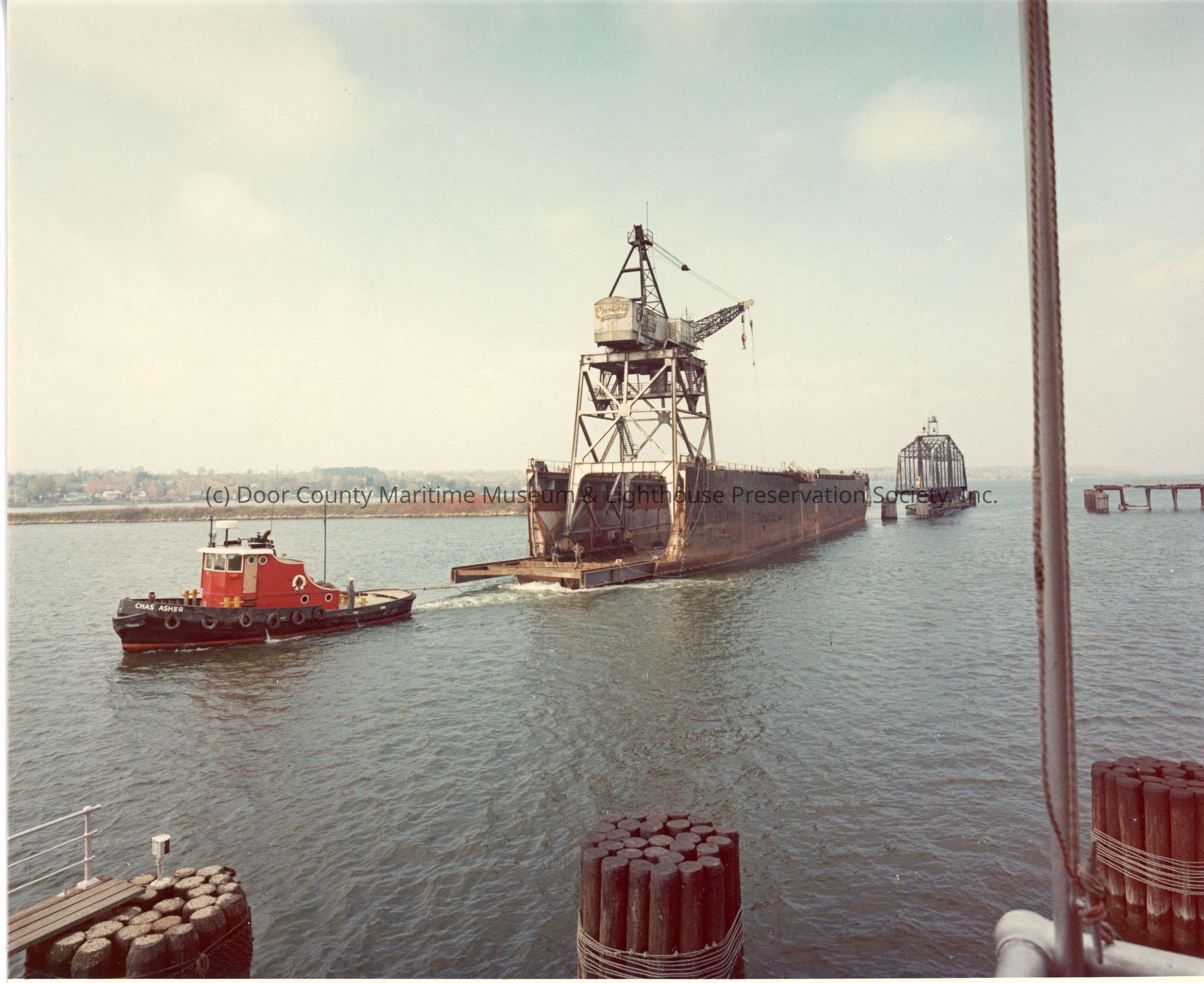 Christy Corp gantry crane on barge being towed by tug Chas Asher