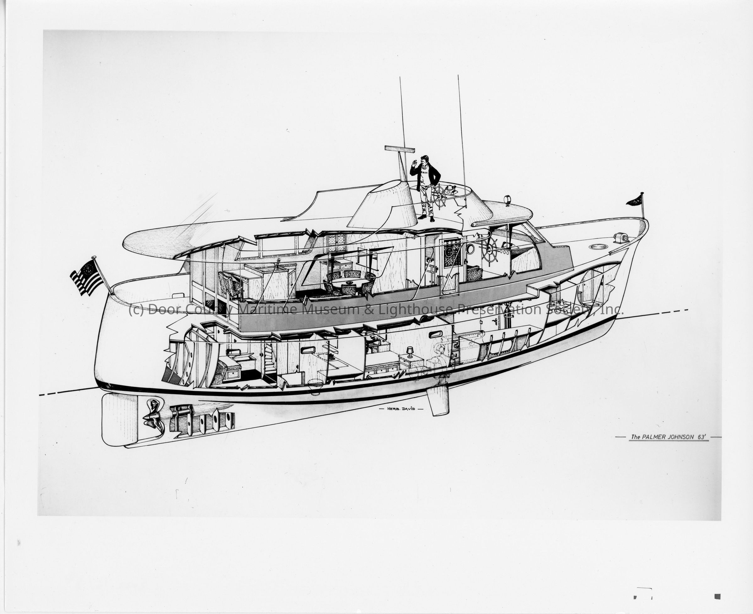 Cross section of drawing of 55' Palmer Johnson Sailboat