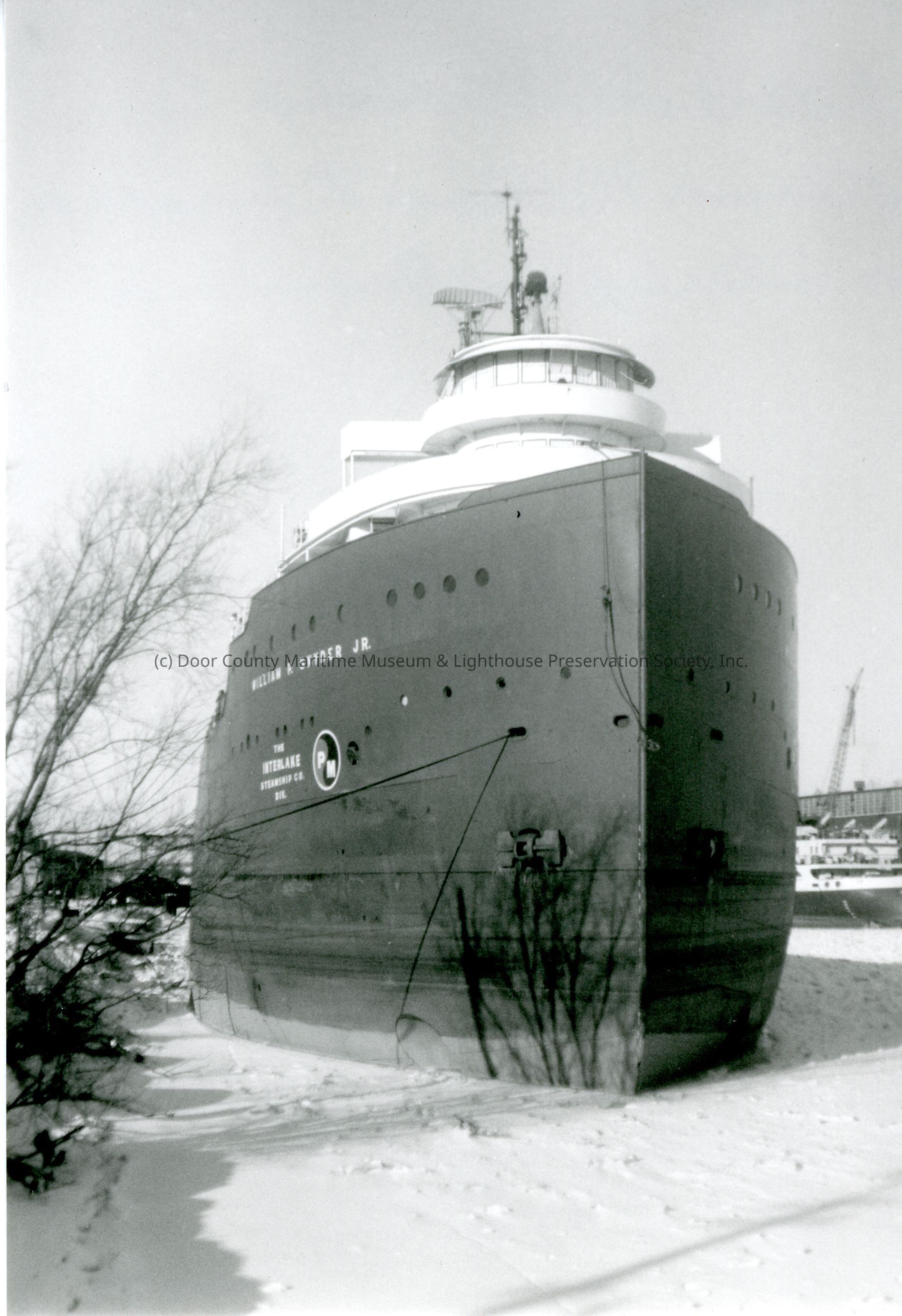 Bow of the freighter William P. Snyder Jr. while it was wintering in Manitowoc 1971Location