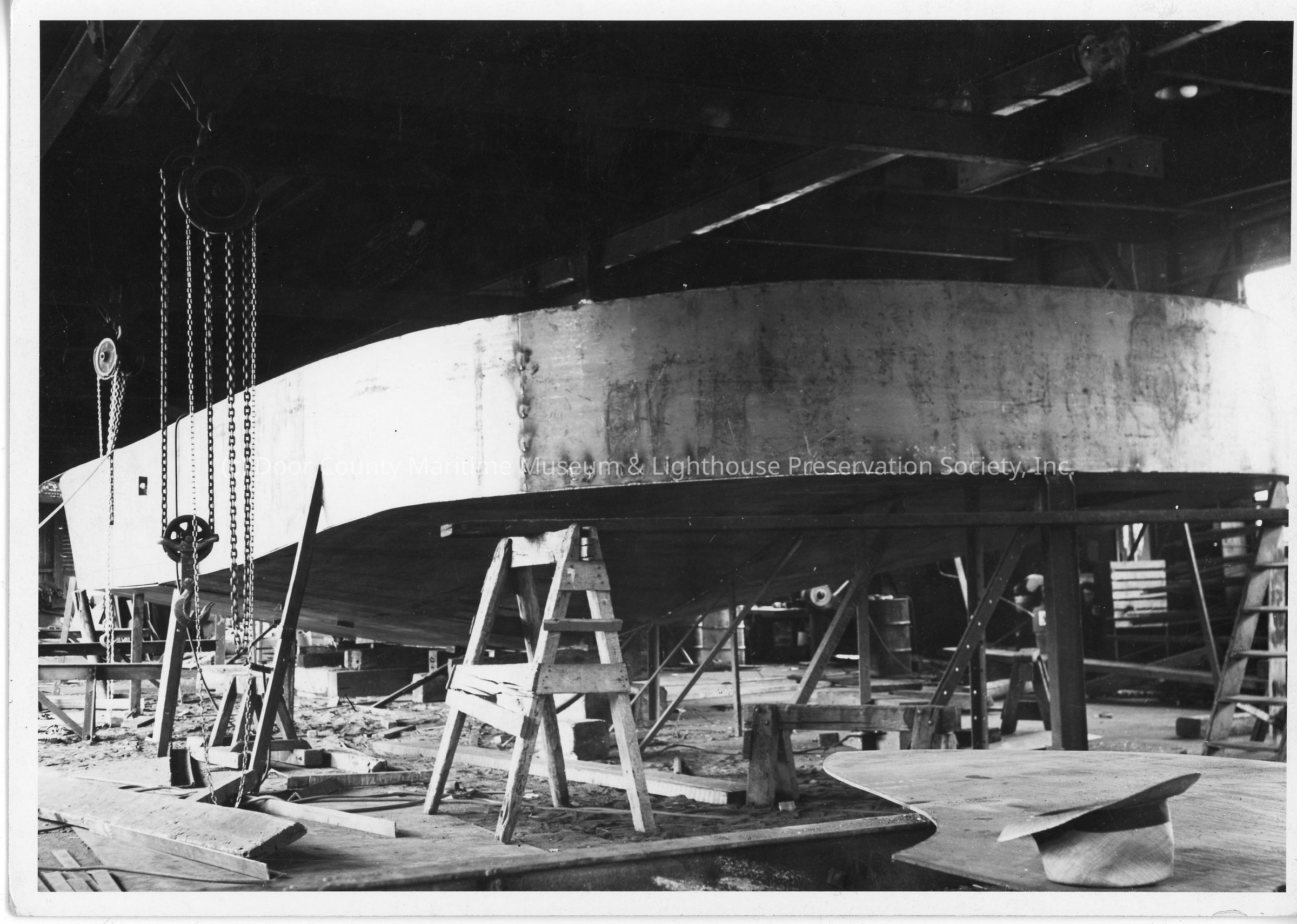Portion of a hull inside a building at SBSB&DD Co.Entry/Object ID