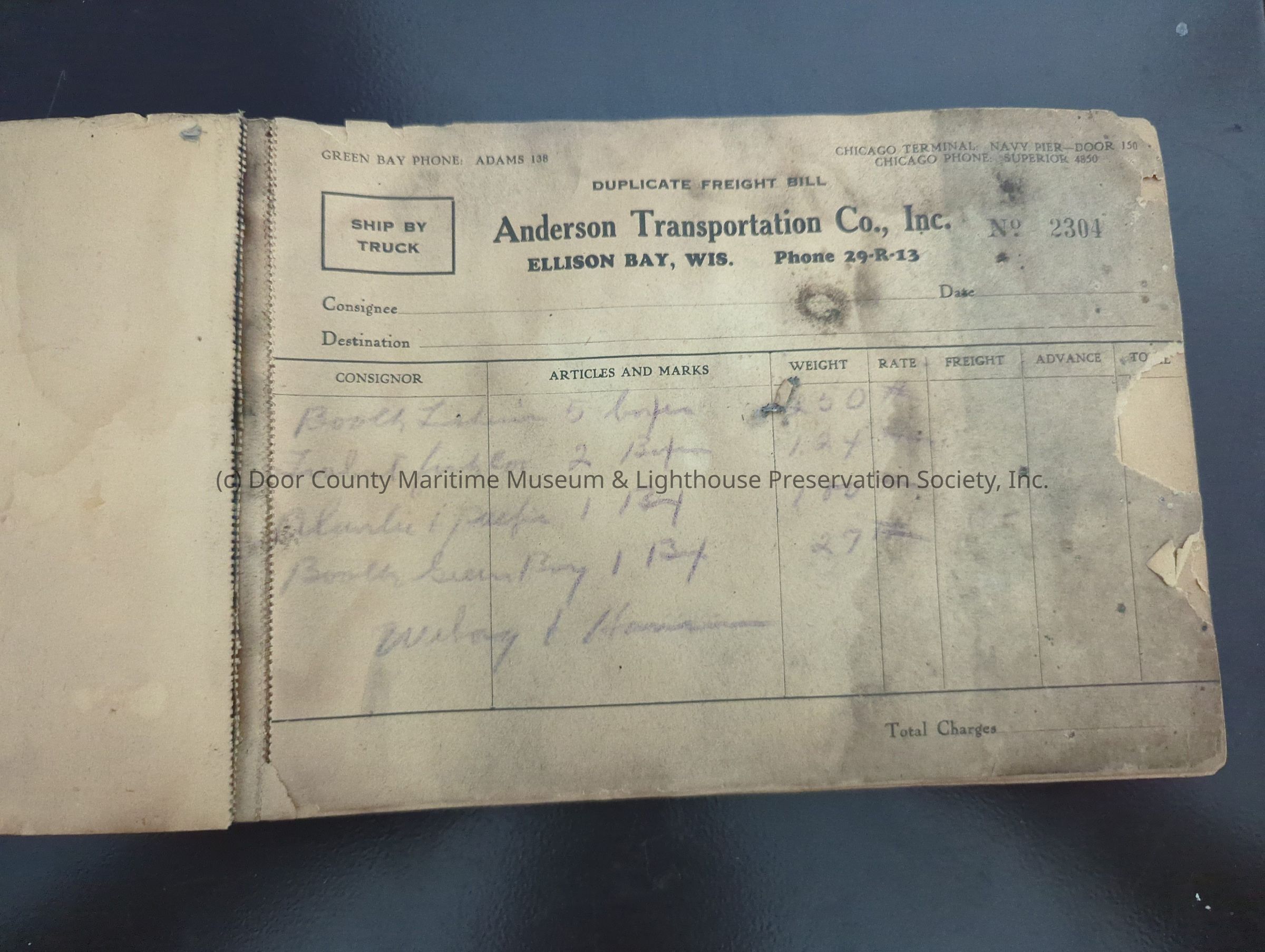 Freight bills 2304-2350 from Anderson Transportation Co. Inc. 1936