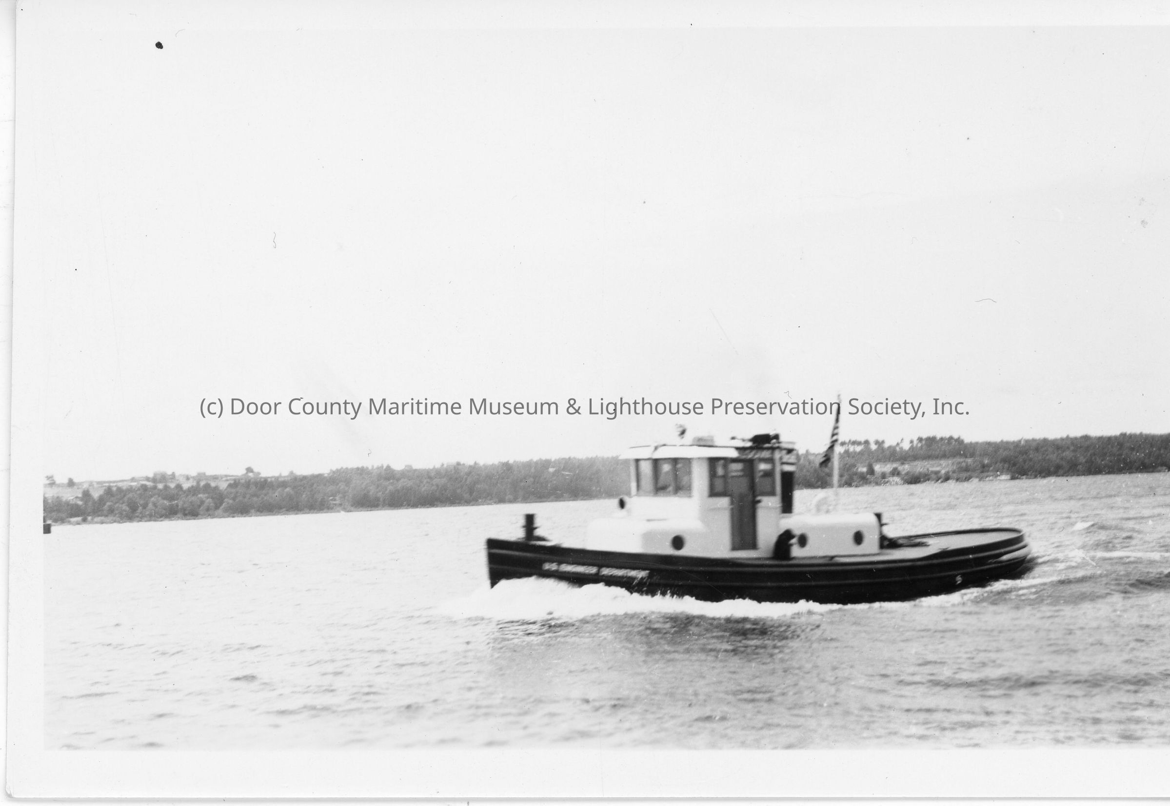 ACE tugboat Algoma underway with shore in background