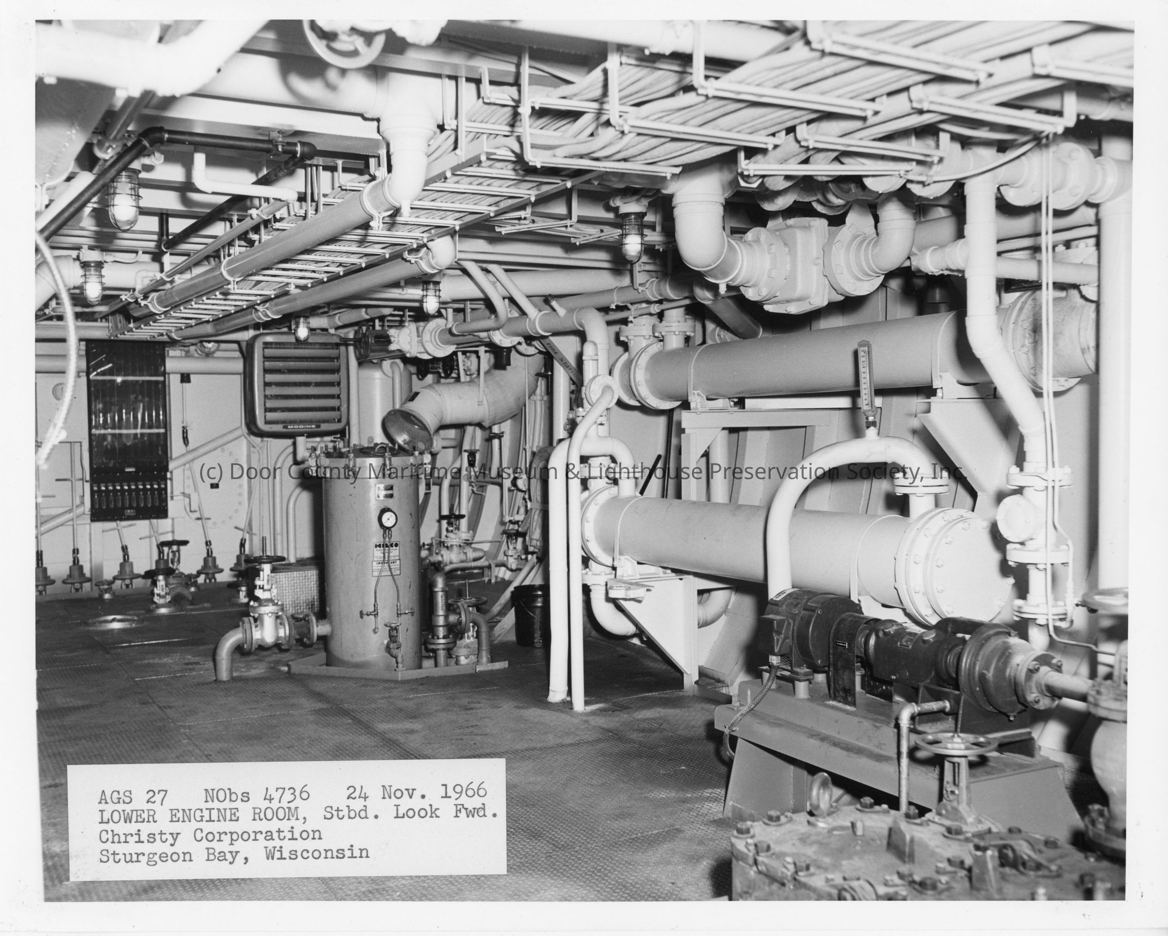 AGS-27 Kane lower engine room starboard looking forward November 24, 1966