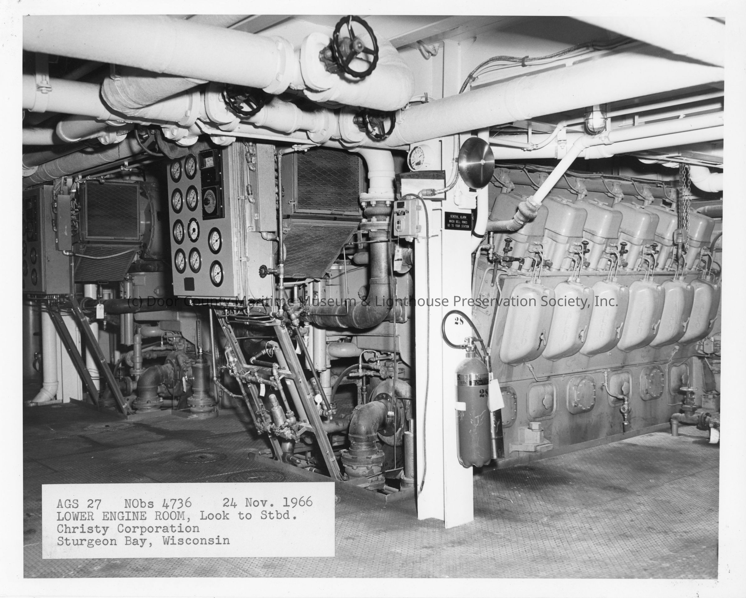 AGS-27 Kane lower level engine room looking to starboard November 24, 1966