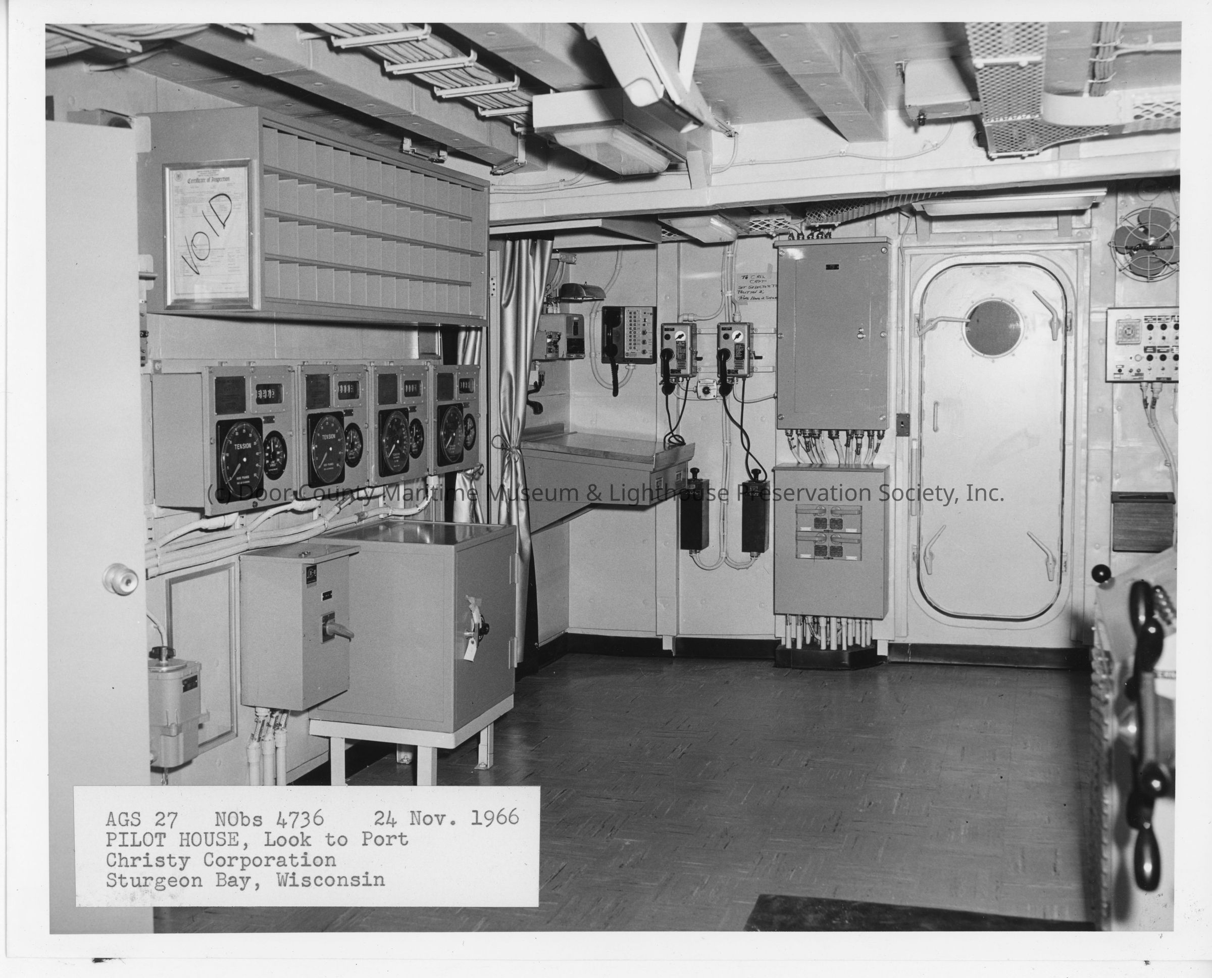 AGS-27 Kane pilothouse looking port November 24, 1966