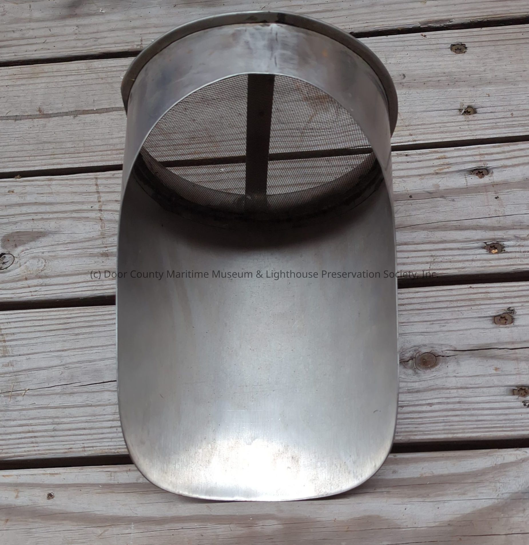 Had made metal air scoop. Silver metal circular hood with silver metal screen. Silver metal bar in front of screen