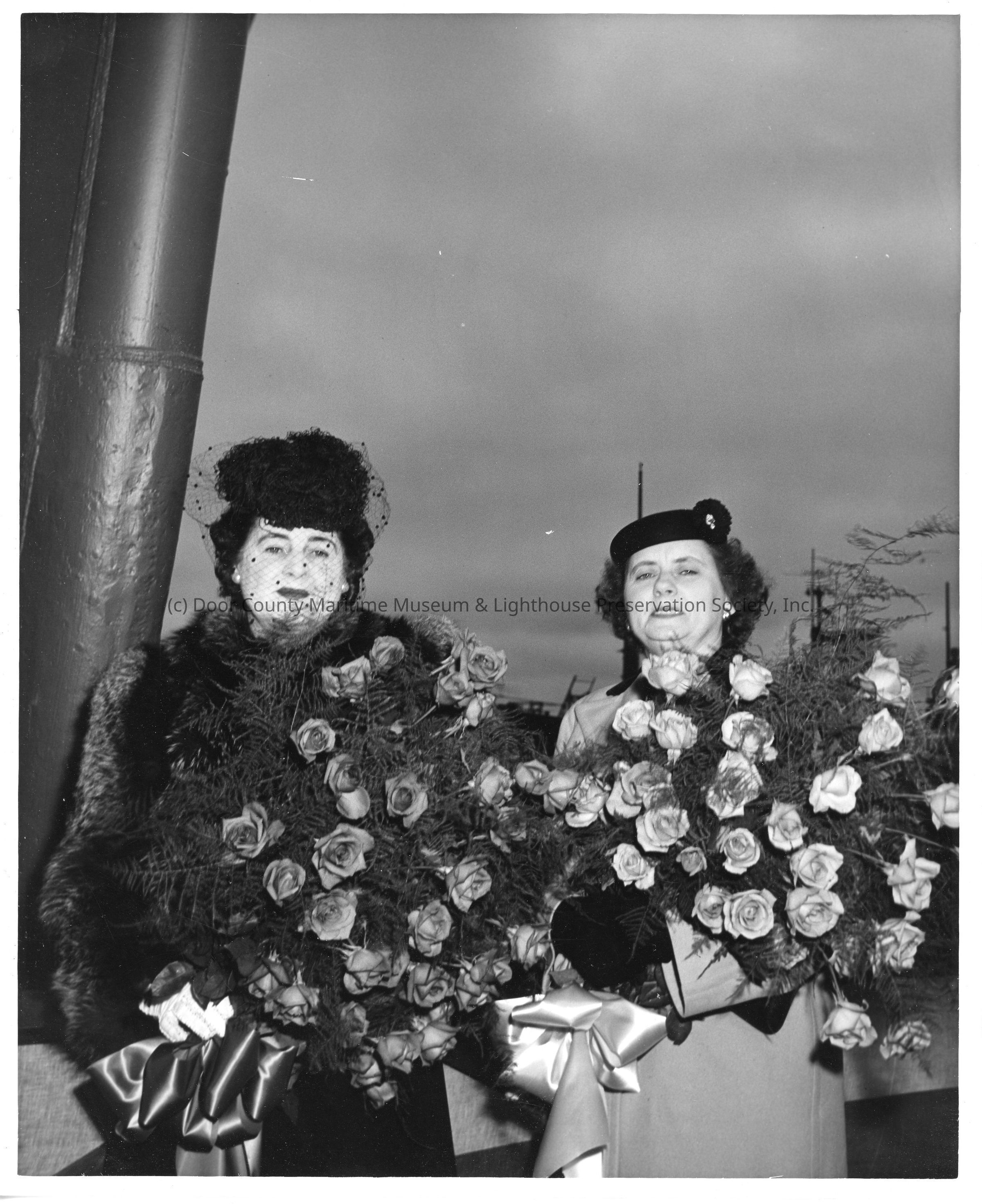 AK-203 Rockdale ship sponsors holding flowers at christening