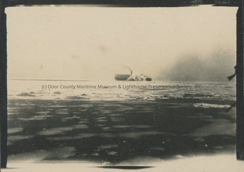 The ship, Alabama, stuck in ice off of Belmont Avenue, Chicago.