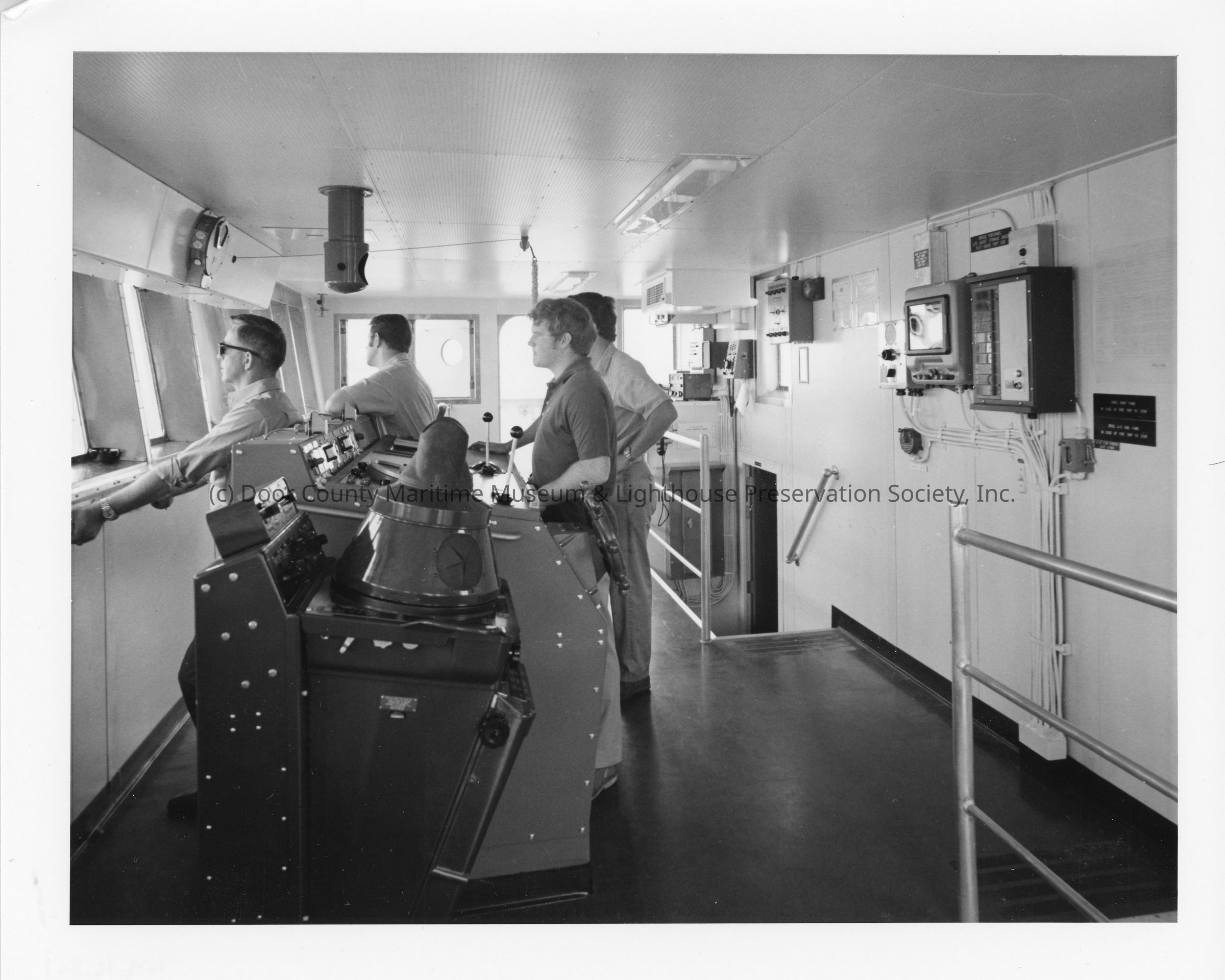 Alcoa Seaprobe pilot house and instrument with four people at steering consoleEntry/Object ID