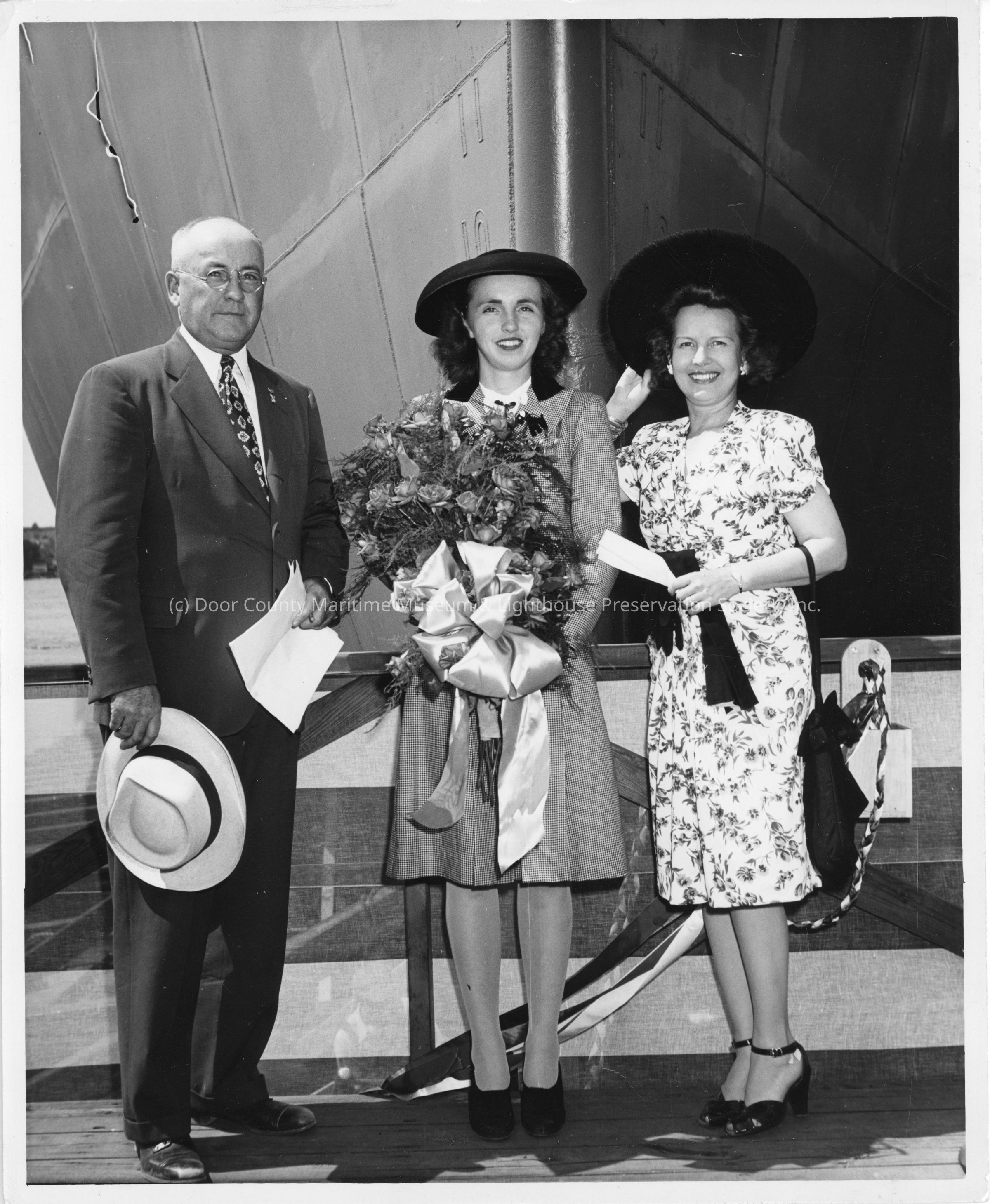 Alva Smith, Leathem D. Smith, and ship sponsor at christening of AK-207 USS RichlandEntry/Object ID
