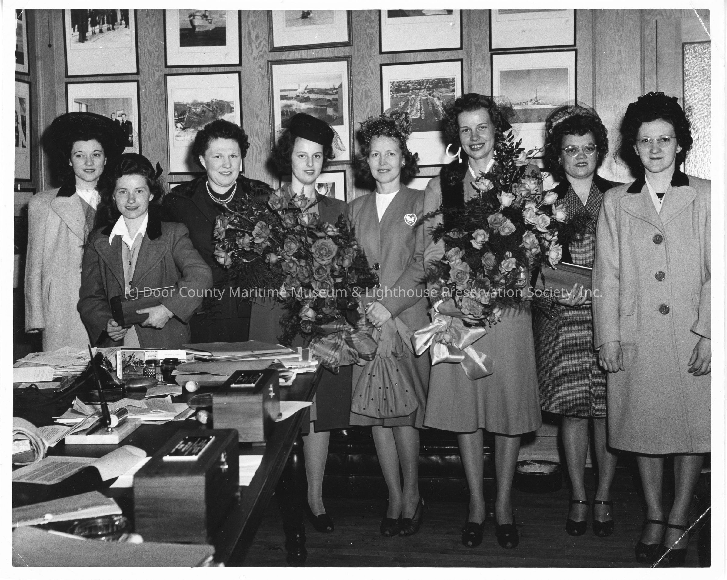 Alva Smith with six women in L.D. Smith Shipbuilding OfficeEntry/Object ID