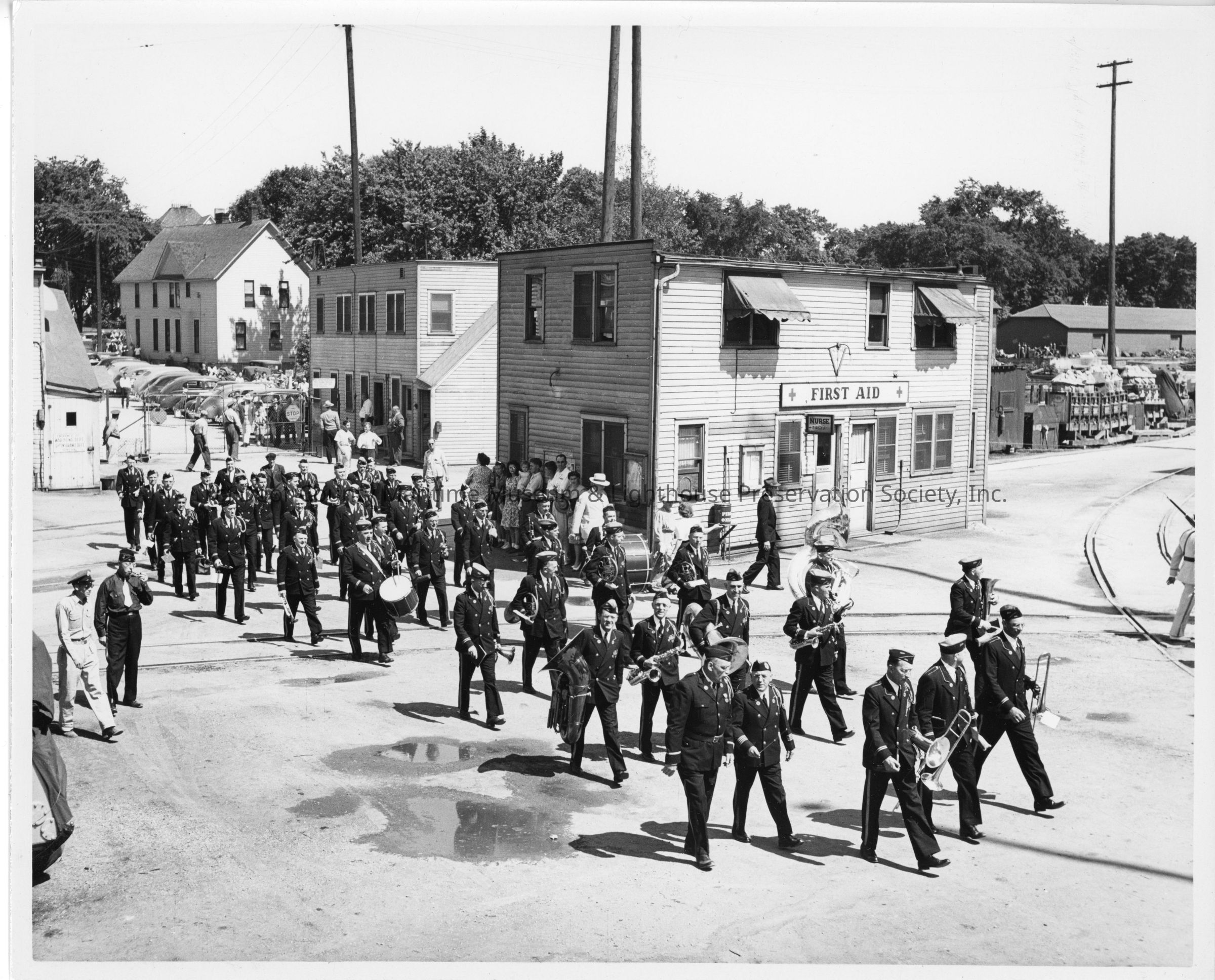 American Legion Band marching through L.D. Smith yardEntry/Object ID