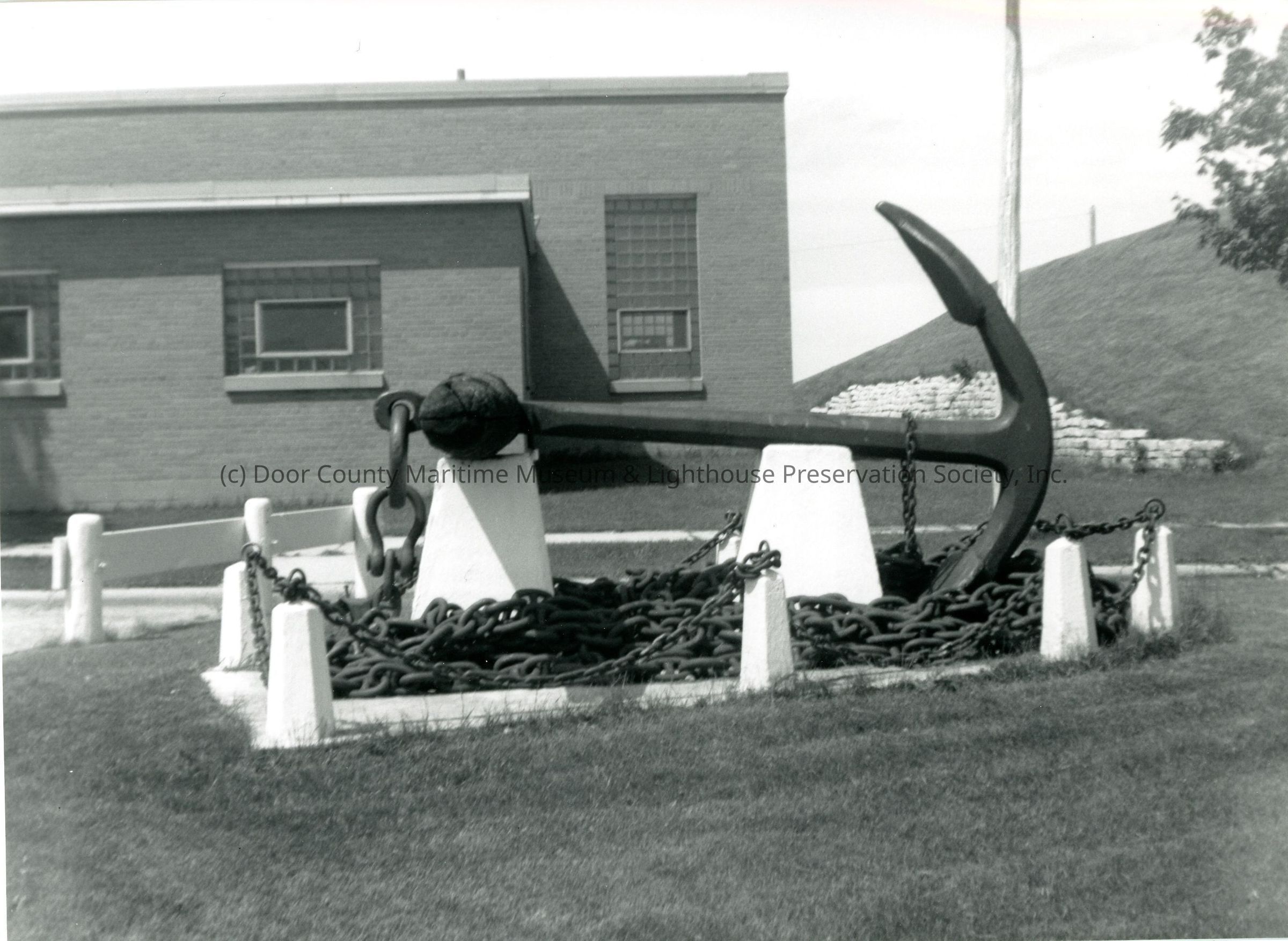 Anchor from sunken schooner barge Emerald in Kewaunee 1968