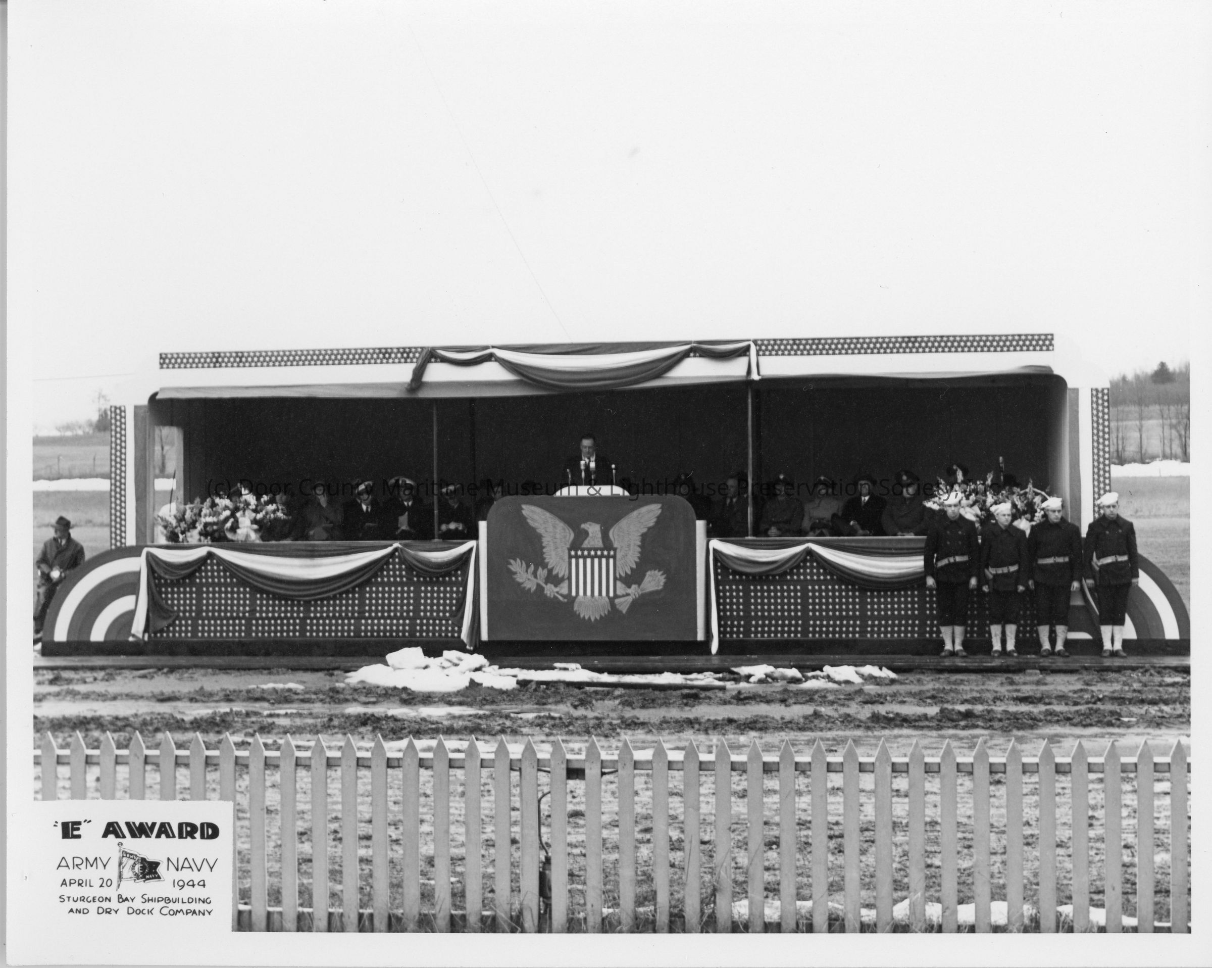 Army/Navy E award with man giving speech at SBSB&DD Co. April 20, 1944Entry/Object ID