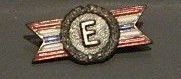 Army-Navy production award "E" pin; red, white, blue stripes with circle "E" in middle.