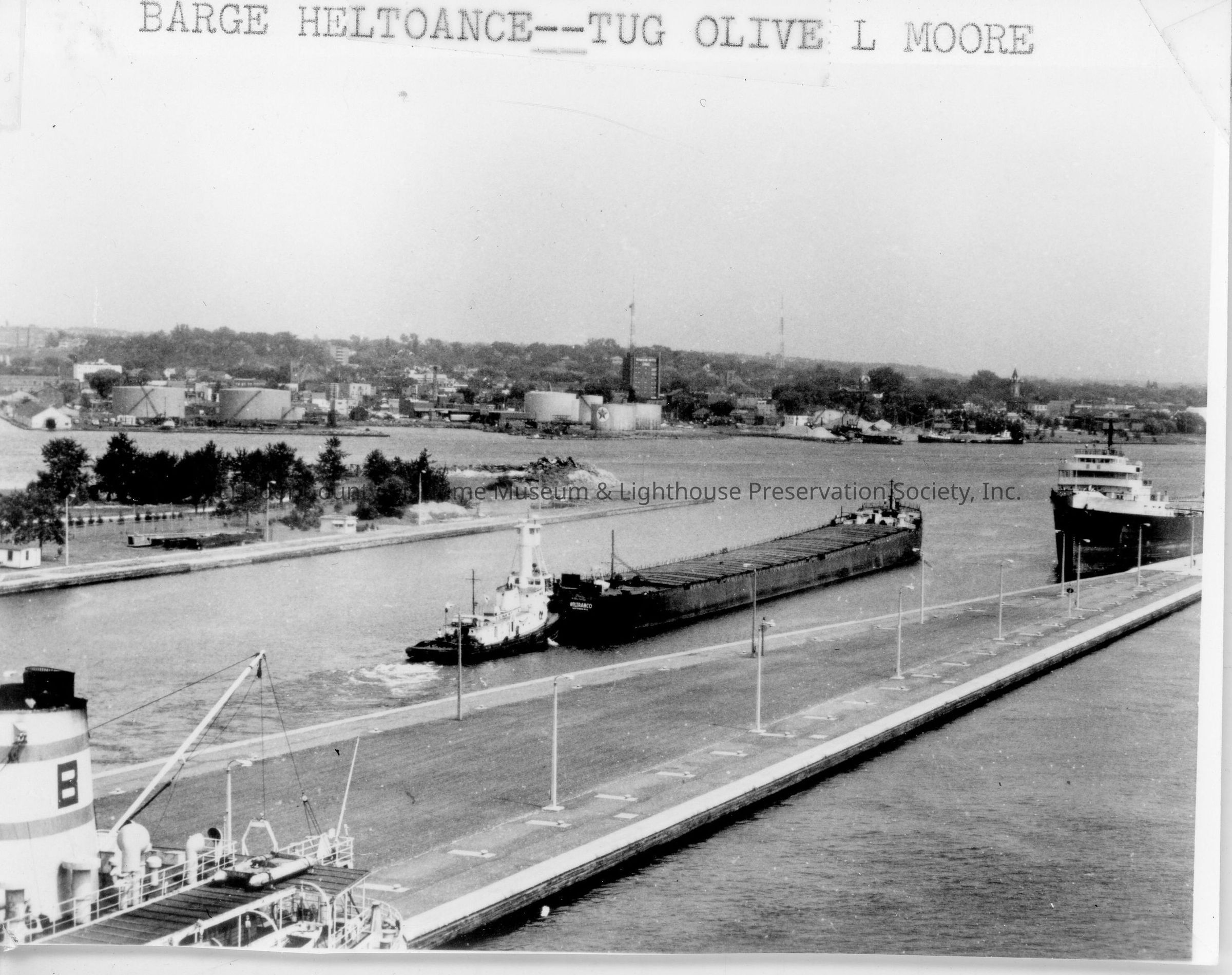 Barge Heltoance being pushed by the tug Olive L Moore in lock