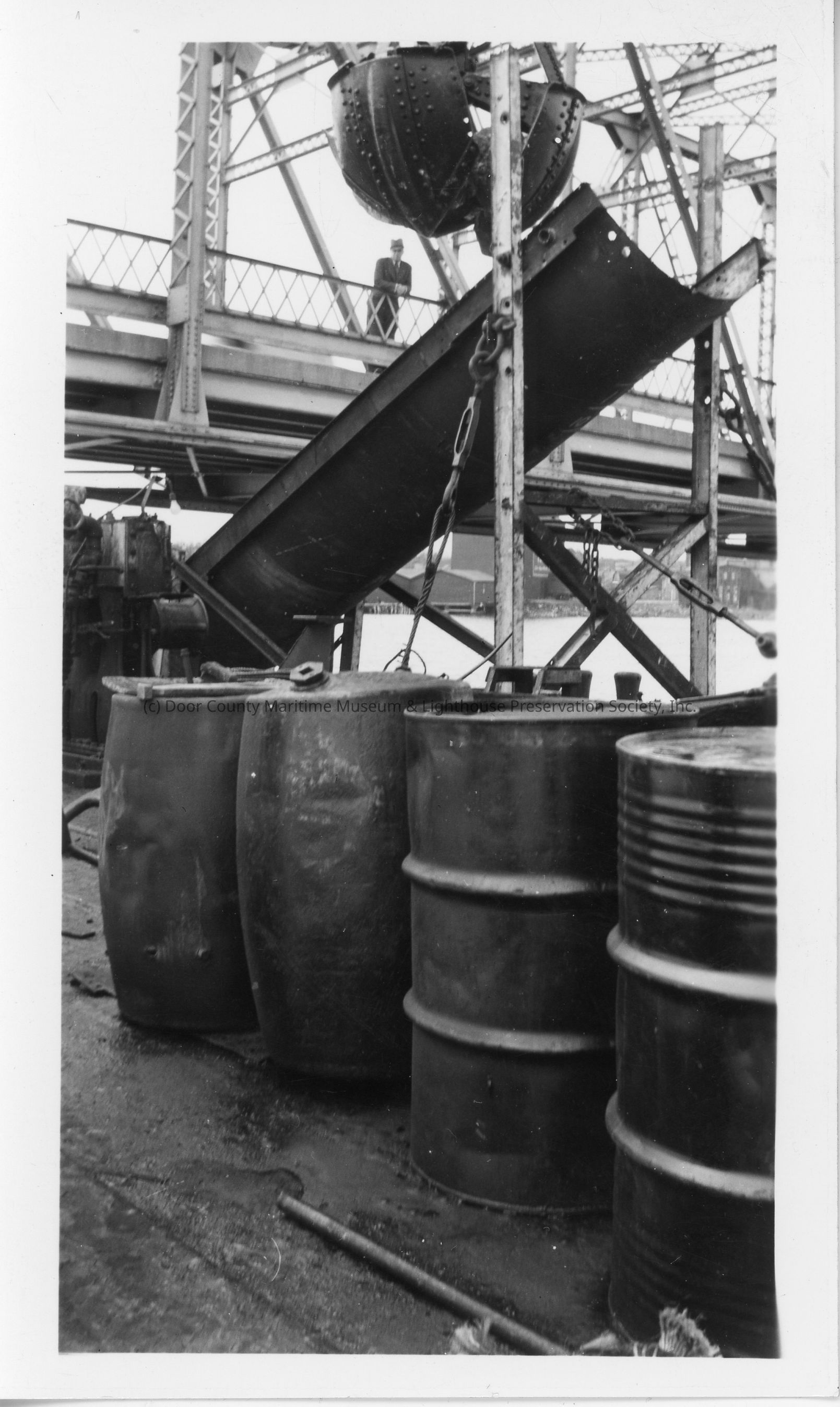 Barrels on barge Transport next to bridgeEntry/Object ID