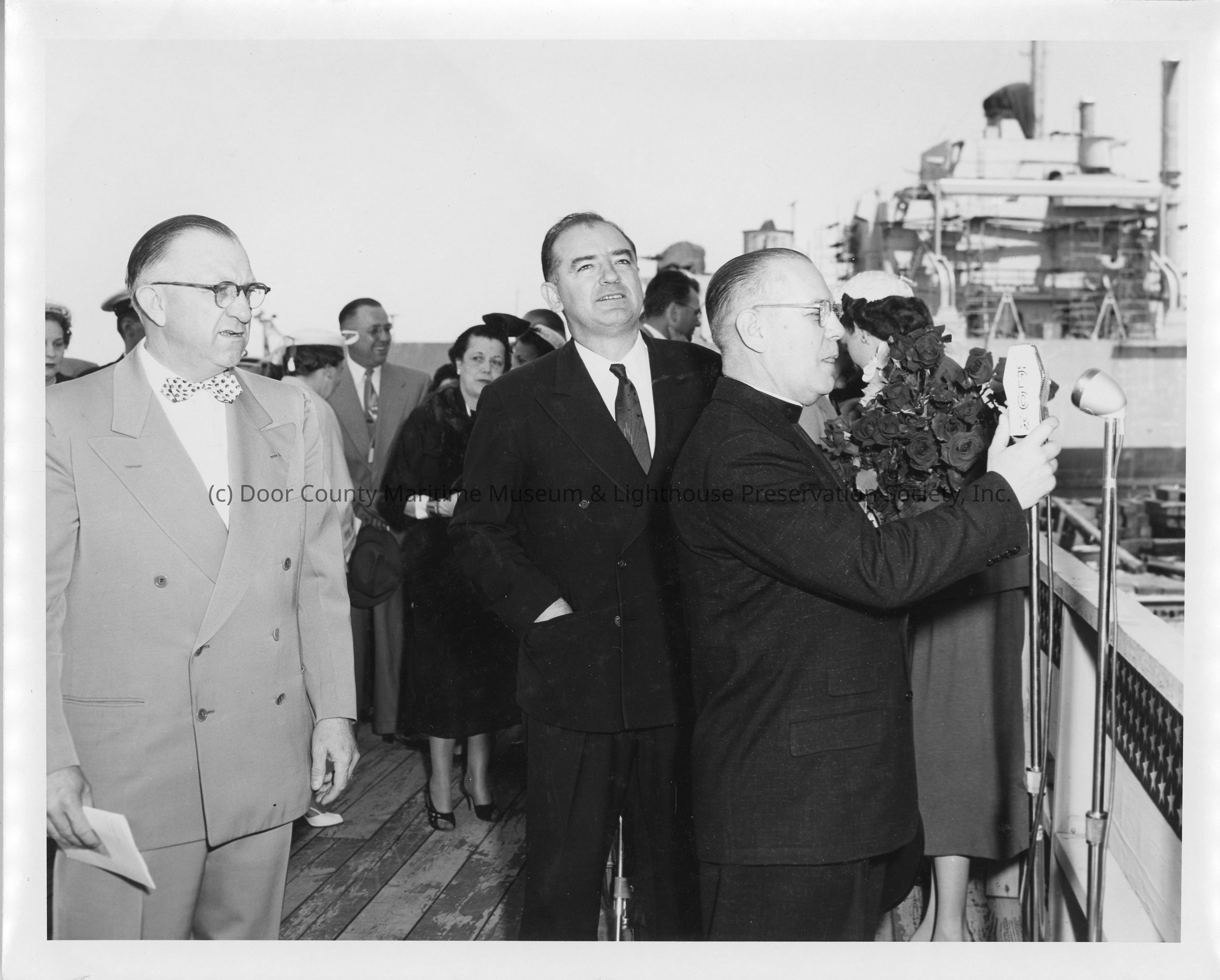 Joseph McCarthy and C. Ray Christianson at christening of LST-1170 May 22, 1954Entry/Object ID