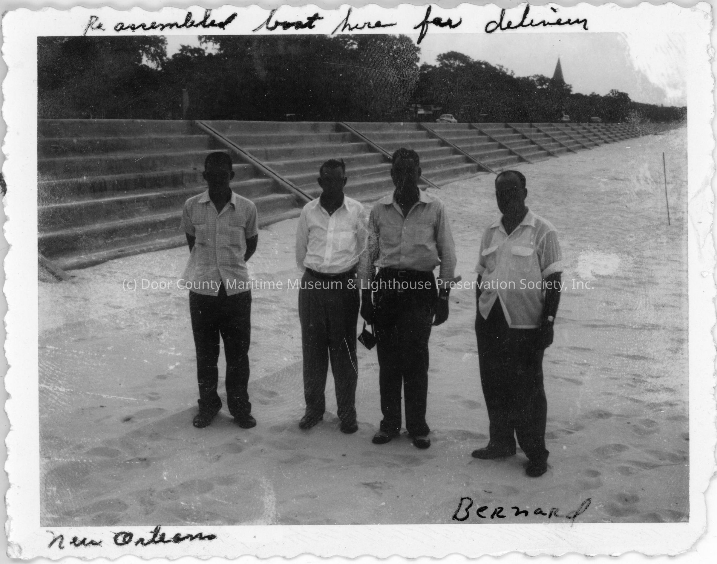 Bernard Lienau and three men on sand in New Orleans
