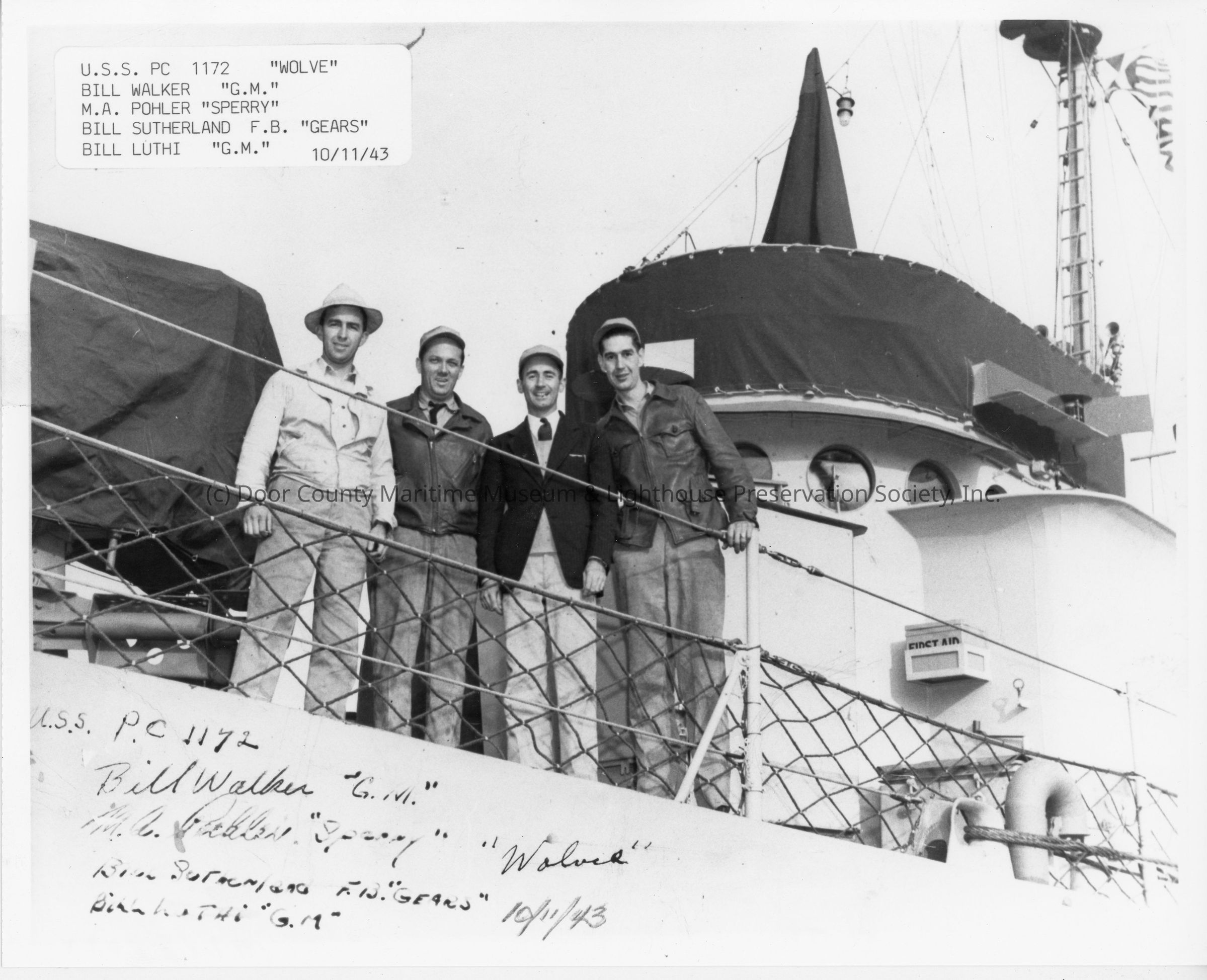 Bill Walker, M.A. Pholer, Bill Sutherland, and Bill Luthi on PC-1172 October 11, 1943Entry/Object ID