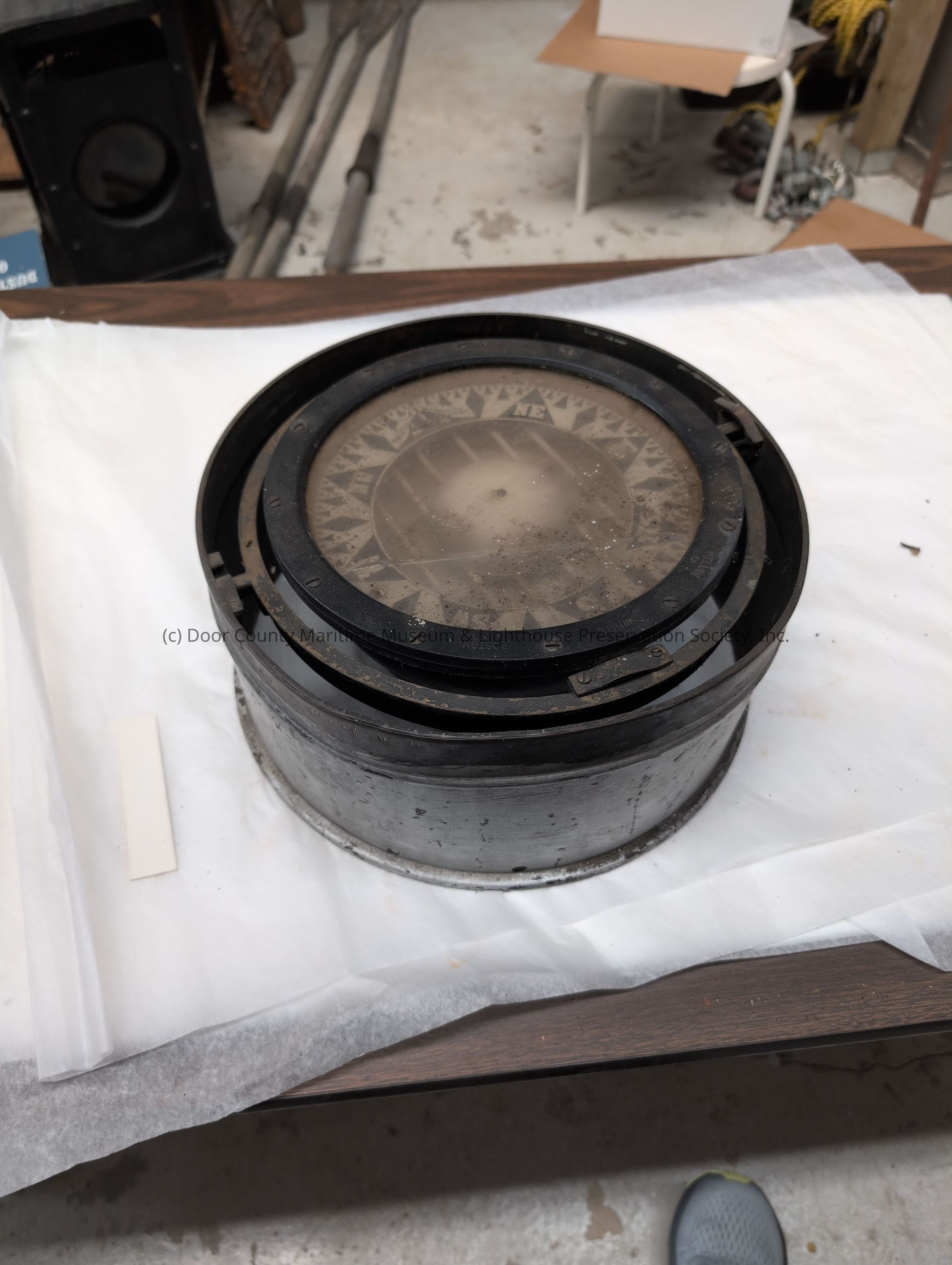 Black metal compass with silver case and metal domed hood