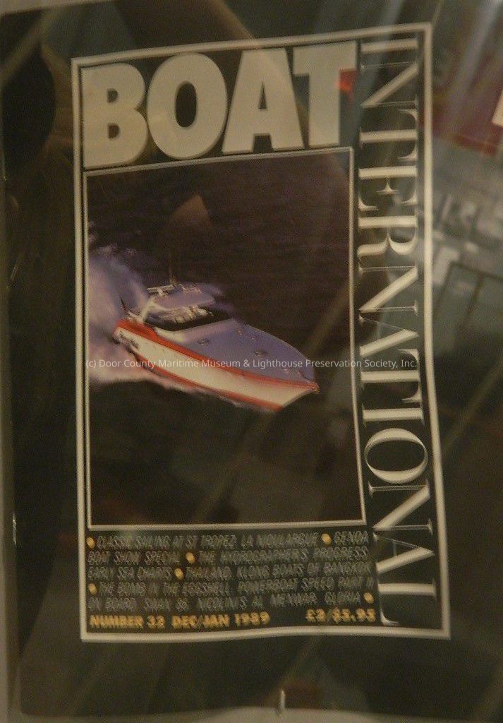 Excerpt from magazine "Boat International"; No. 32; black cover, white print; photograph "Force of Habit" on front cover; Dec.-Jan. 1989.Location