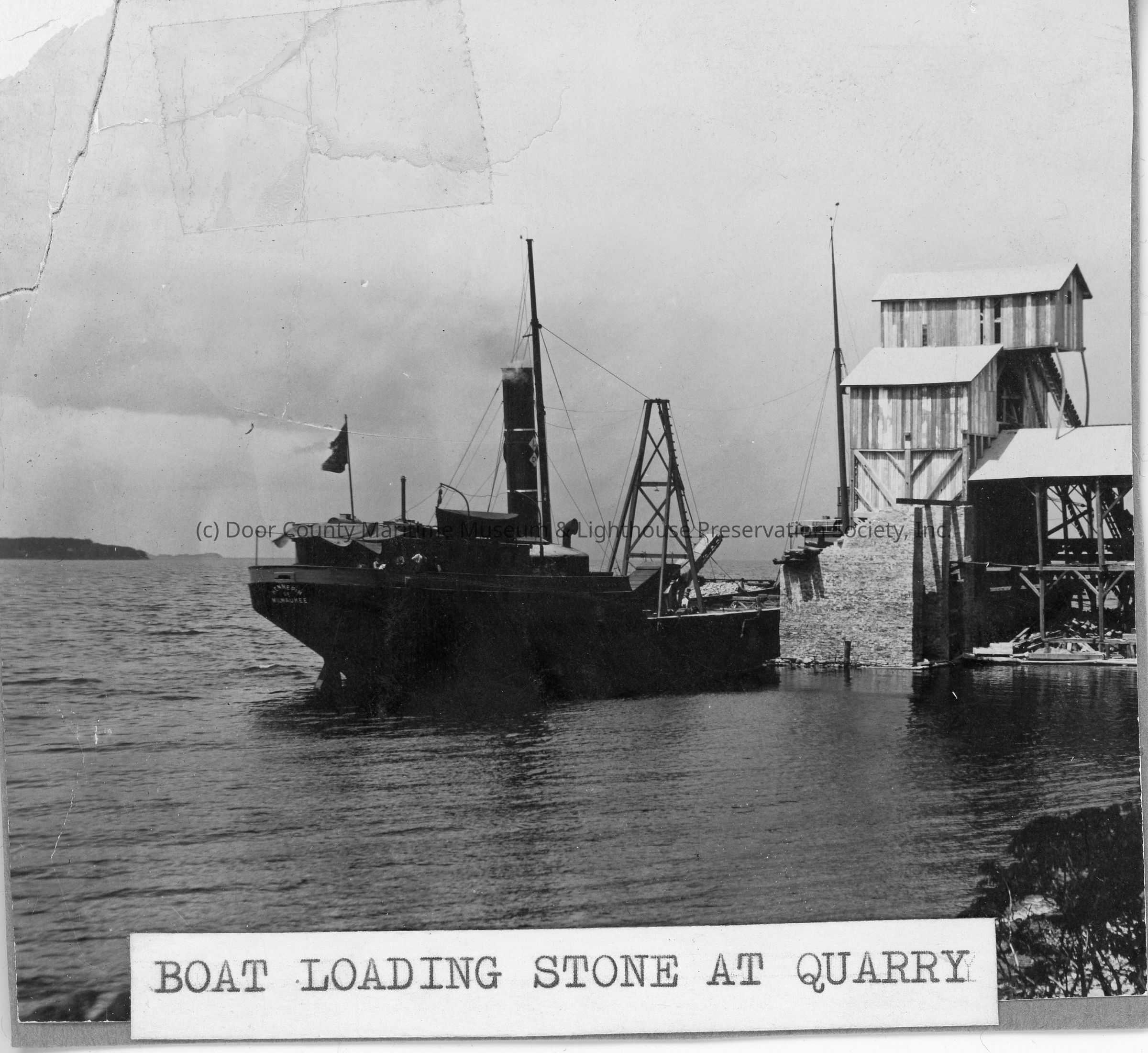 Boat loading stone at stone quarry 1944