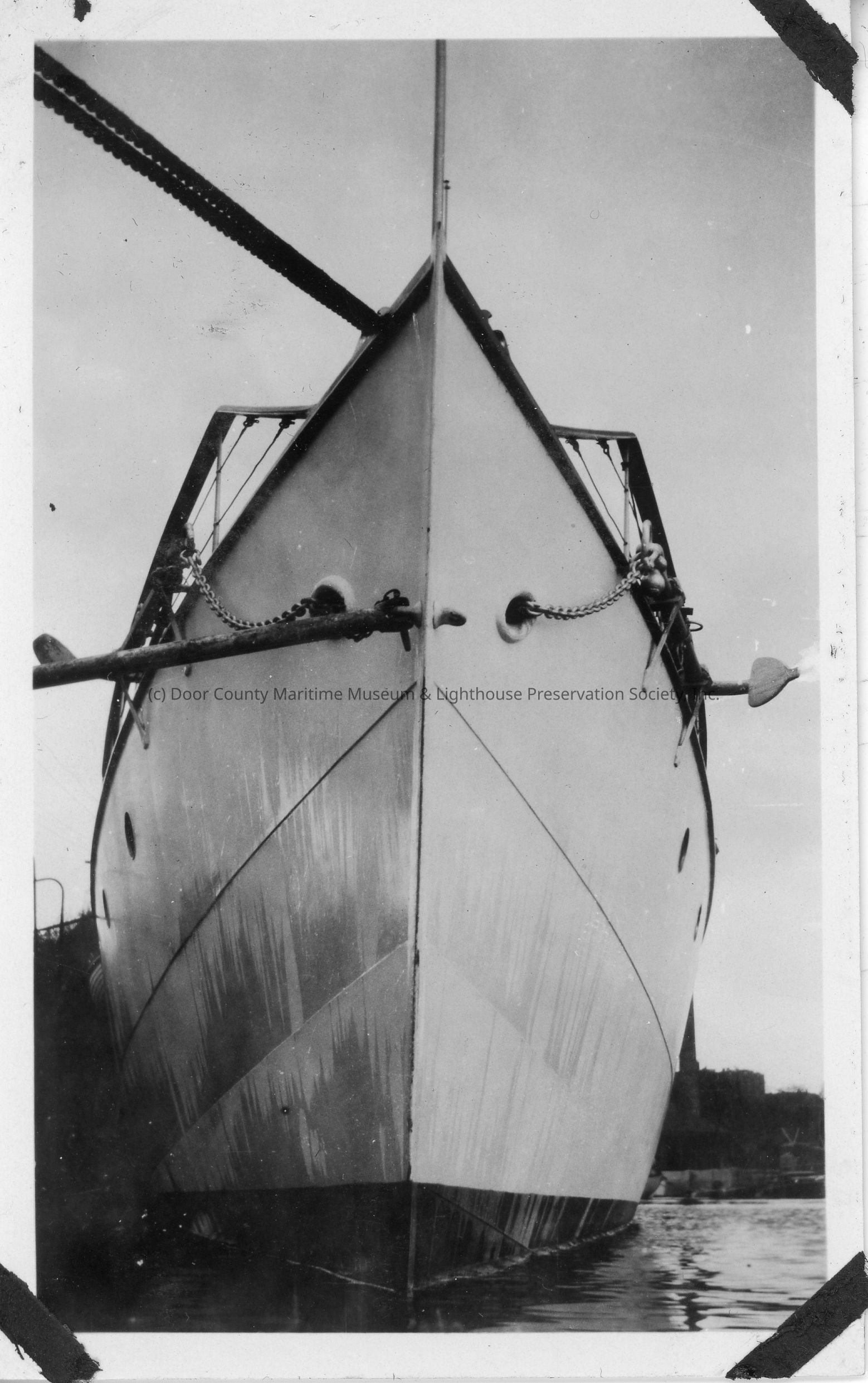 Bow of docked vessel