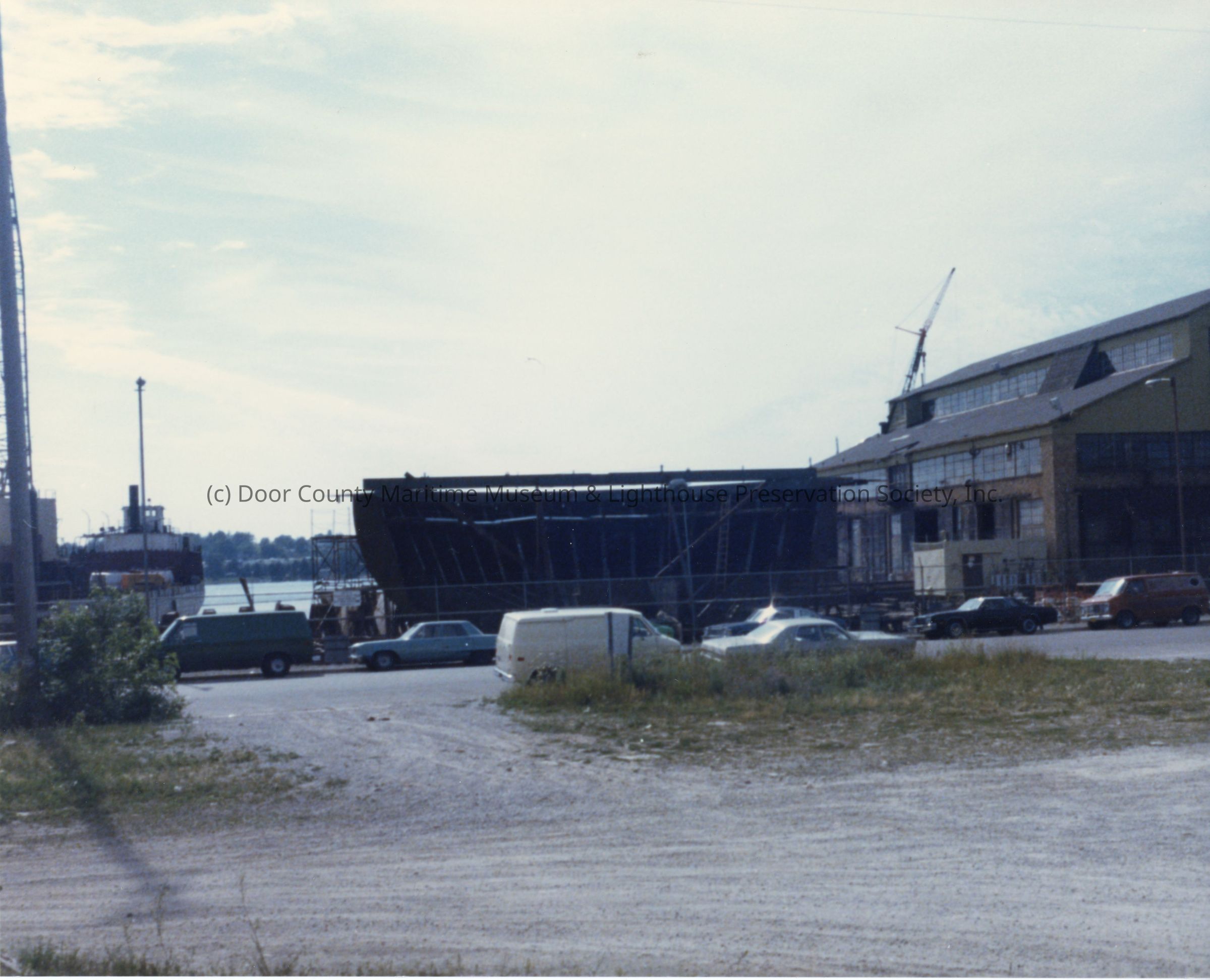 Bow section of Burns Harbor under construction at Bay Shipbuilding August 13, 1979