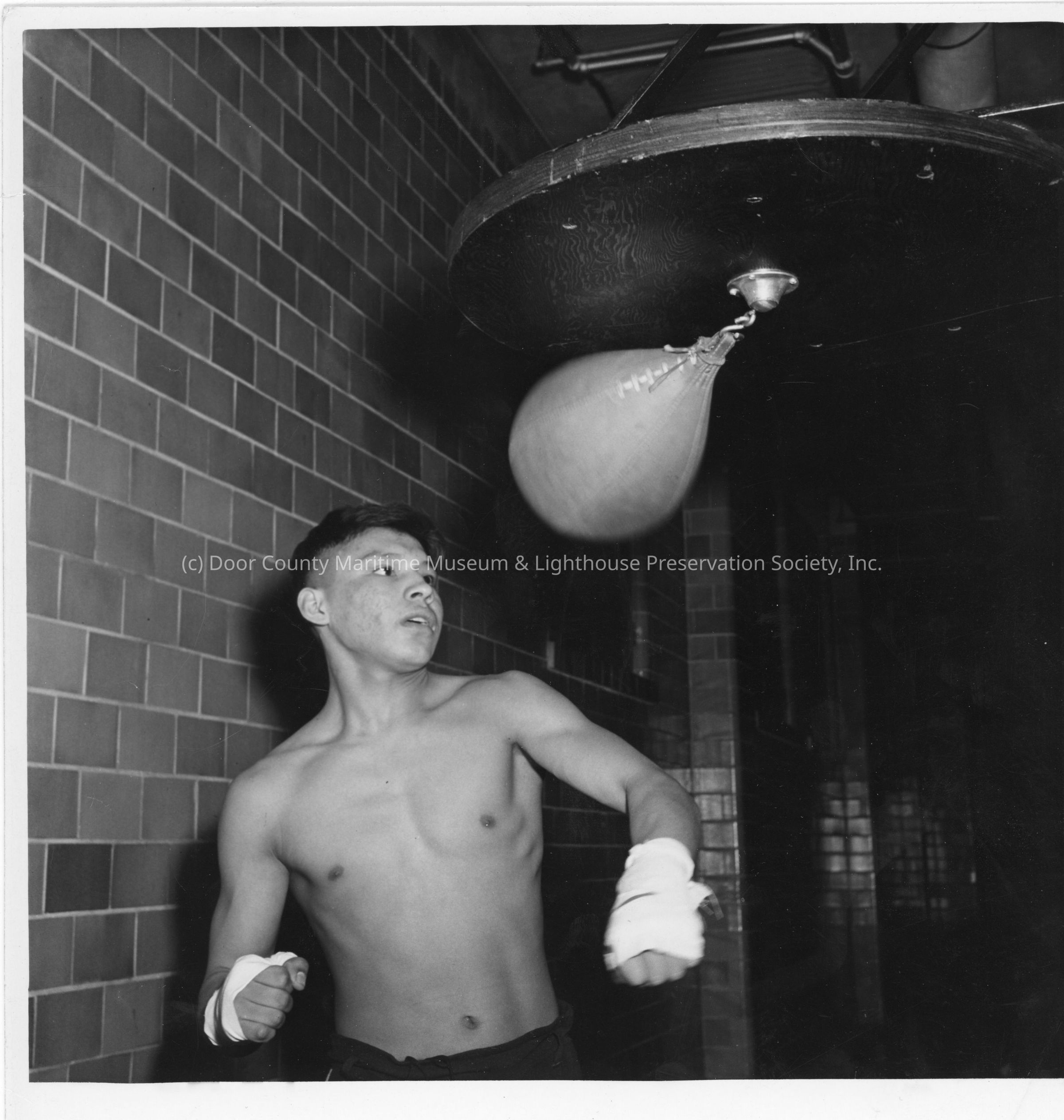Boxer using punching bag