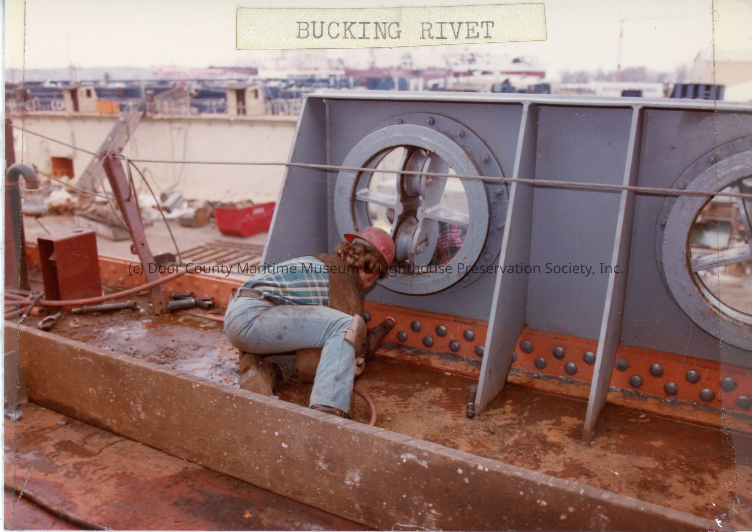Bucking rivet with man in red hat 1982