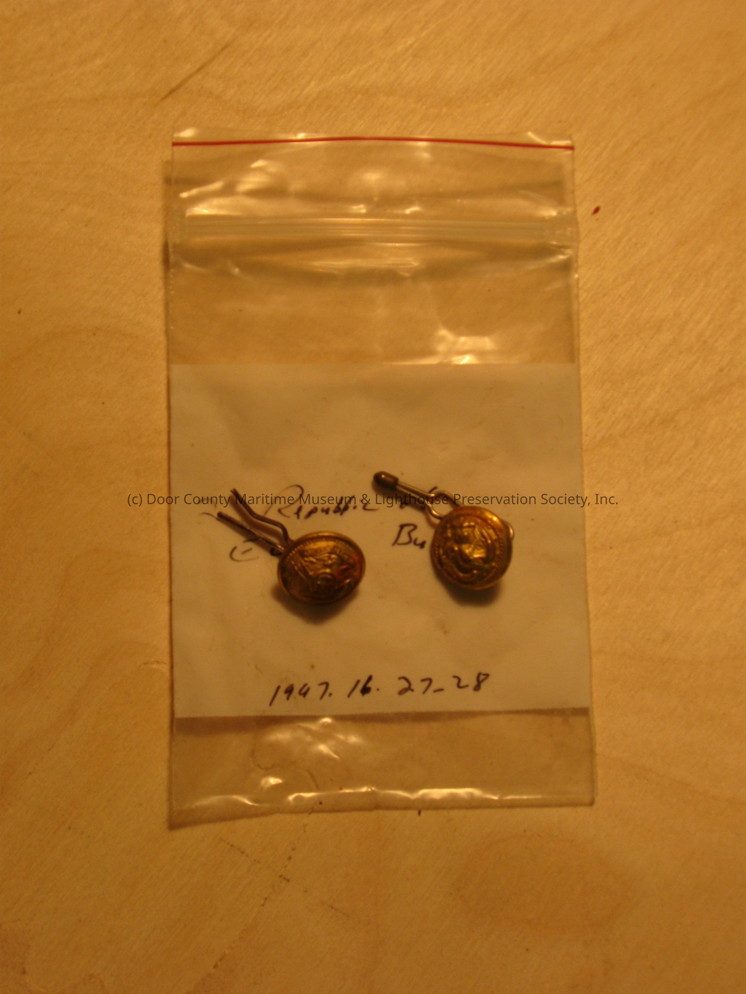 One brass shirt sleeve button. Merchant Mariner Academy, New York
