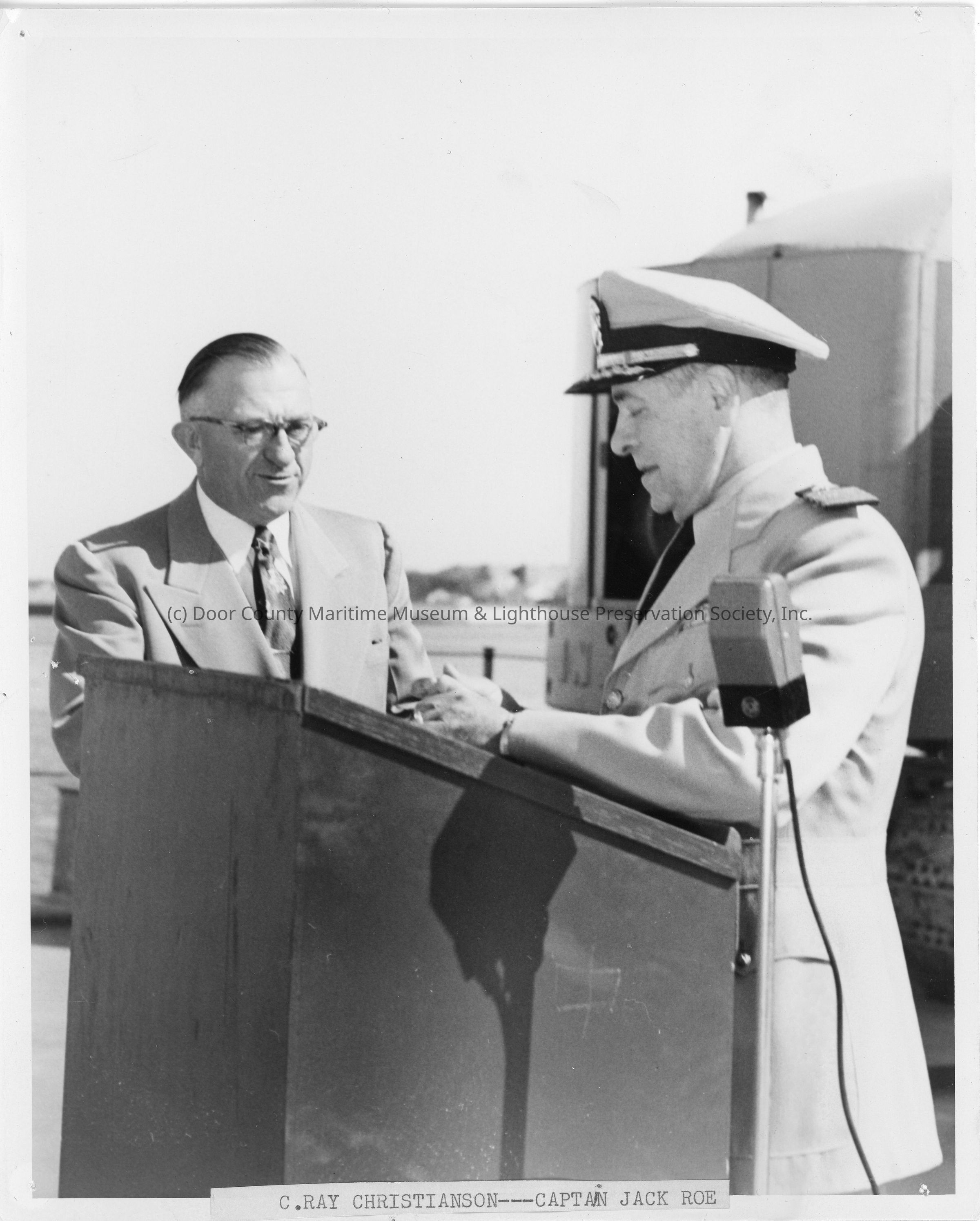 C. Ray Christianson and Captain Jack Roe standing with microphoneEntry/Object ID