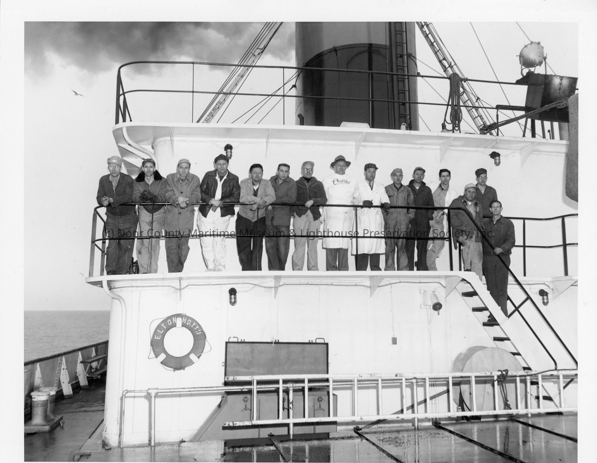 C. Ray Christianson and group on deck of Elton Hoyt II