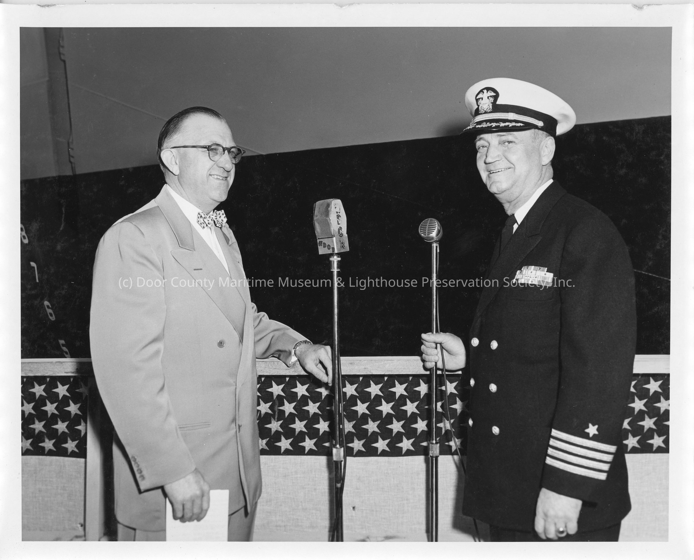 C. Ray Christianson and naval officer at launching of LST-1170 May 22, 1954
