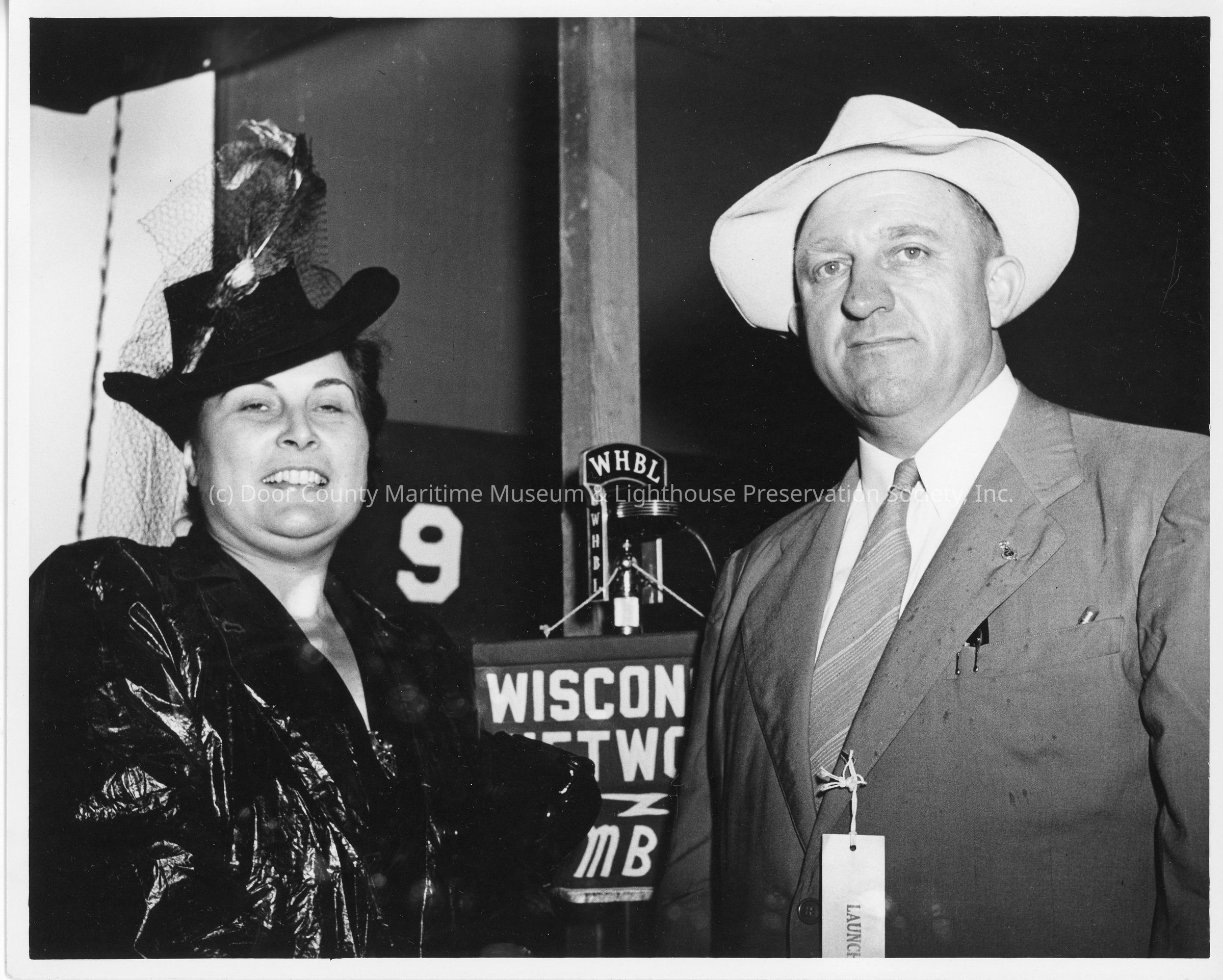C. Ray Christianson and woman in dress at PC-1225 ship christeningEntry/Object ID