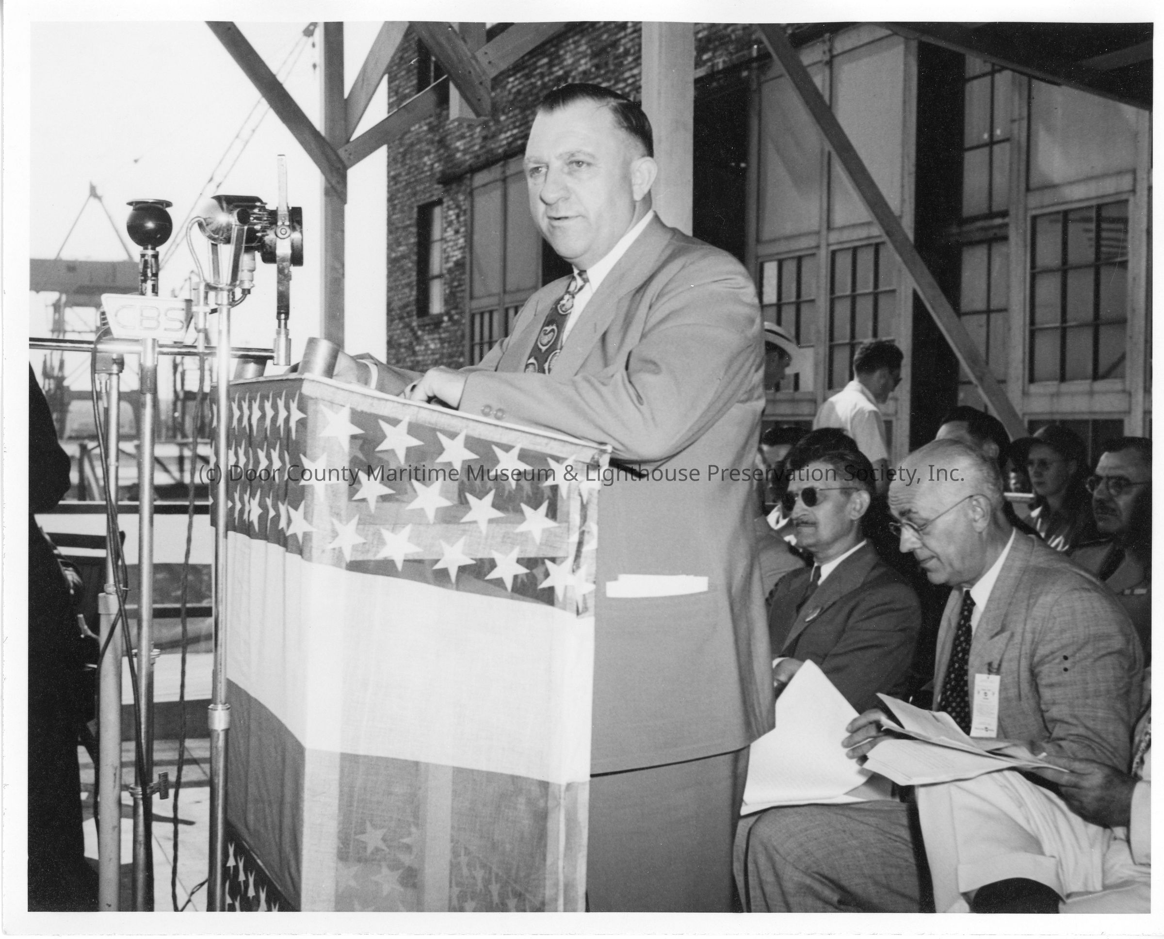 C. Ray Christianson at flag decorated podiumEntry/Object ID