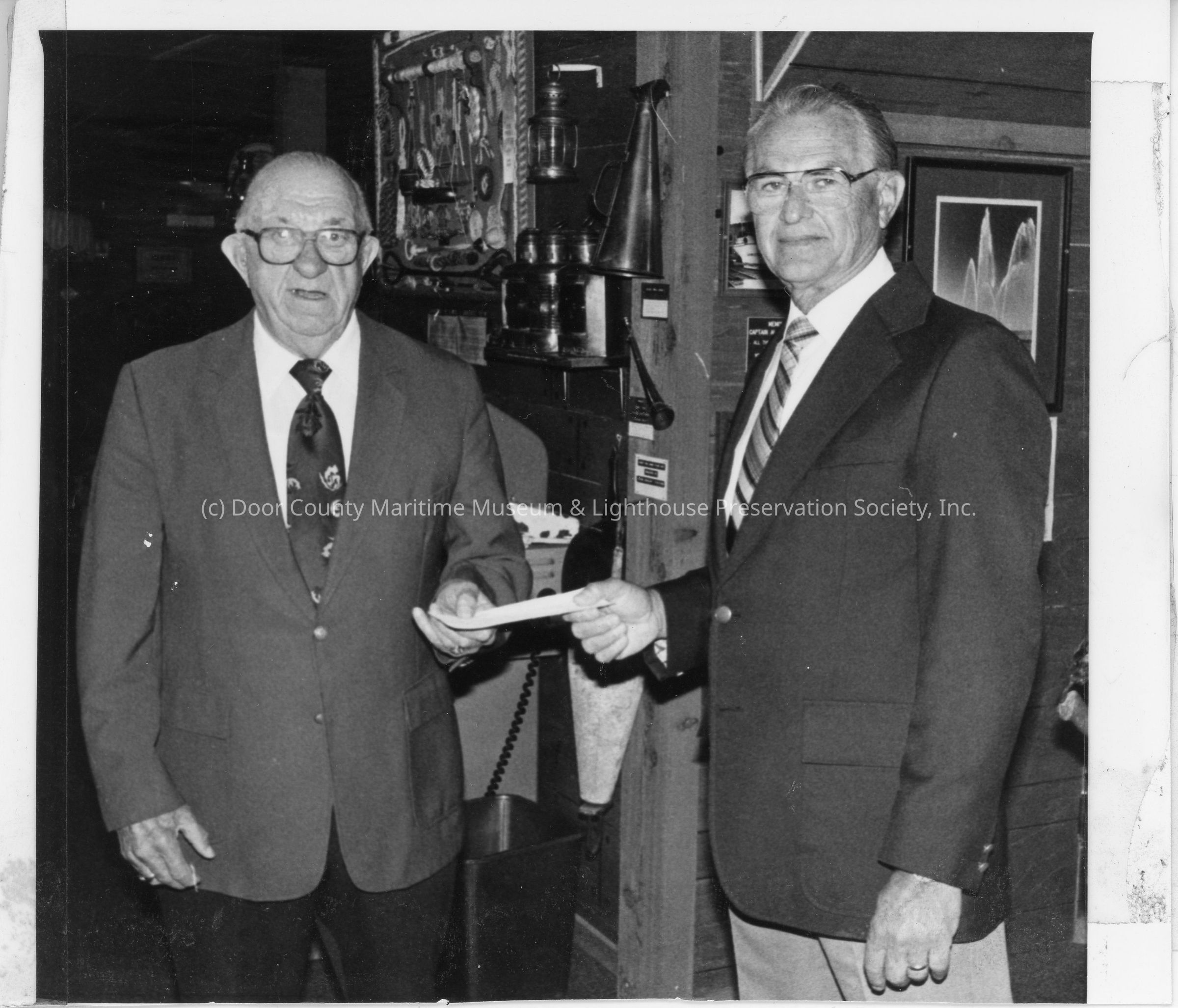 C. Ray Christianson receiving a check from DR. E.S. Minor 1988Entry/Object ID