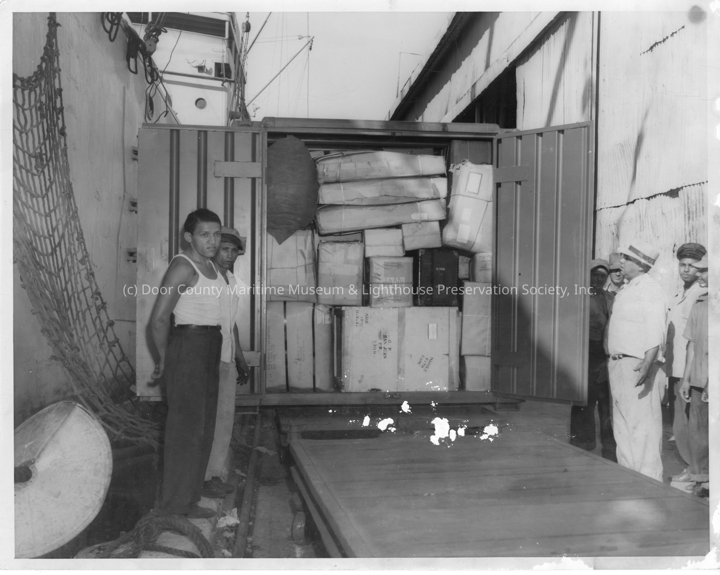 Open Safeway Shipping container filled with cargo next to shipEntry/Object ID