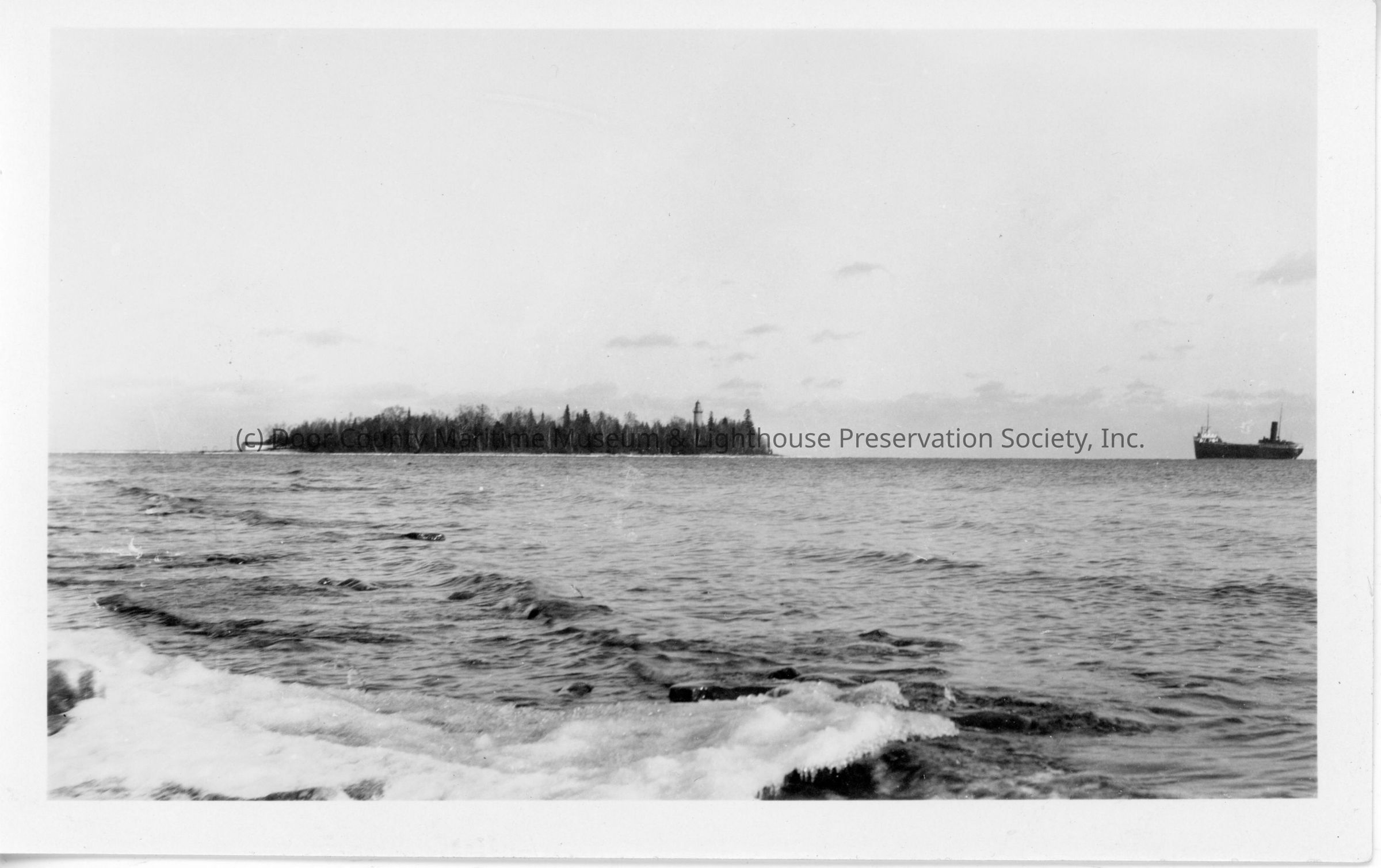 Cana Island with freighter on right